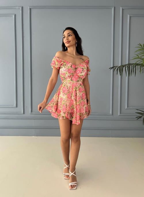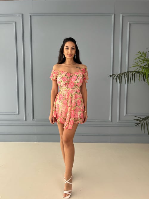 Асимметричное платье с цветочным принтом, розовое, шифоновое, подходит для повседневного ношения, длина 88 см, подкладка, доступно в размерах S и M