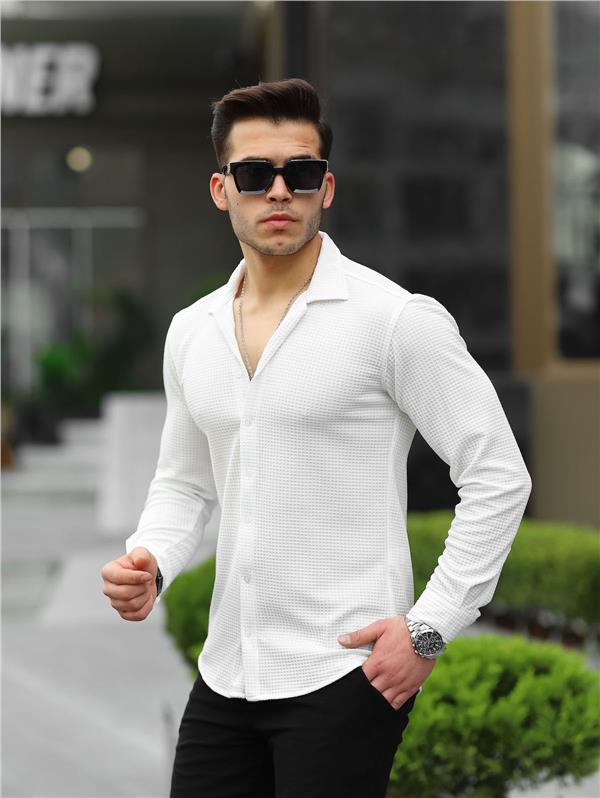 Белая рубашка с узором, комфортабельный крой, 100% хлопок, прекрасно сочетается с чинос и джинсами