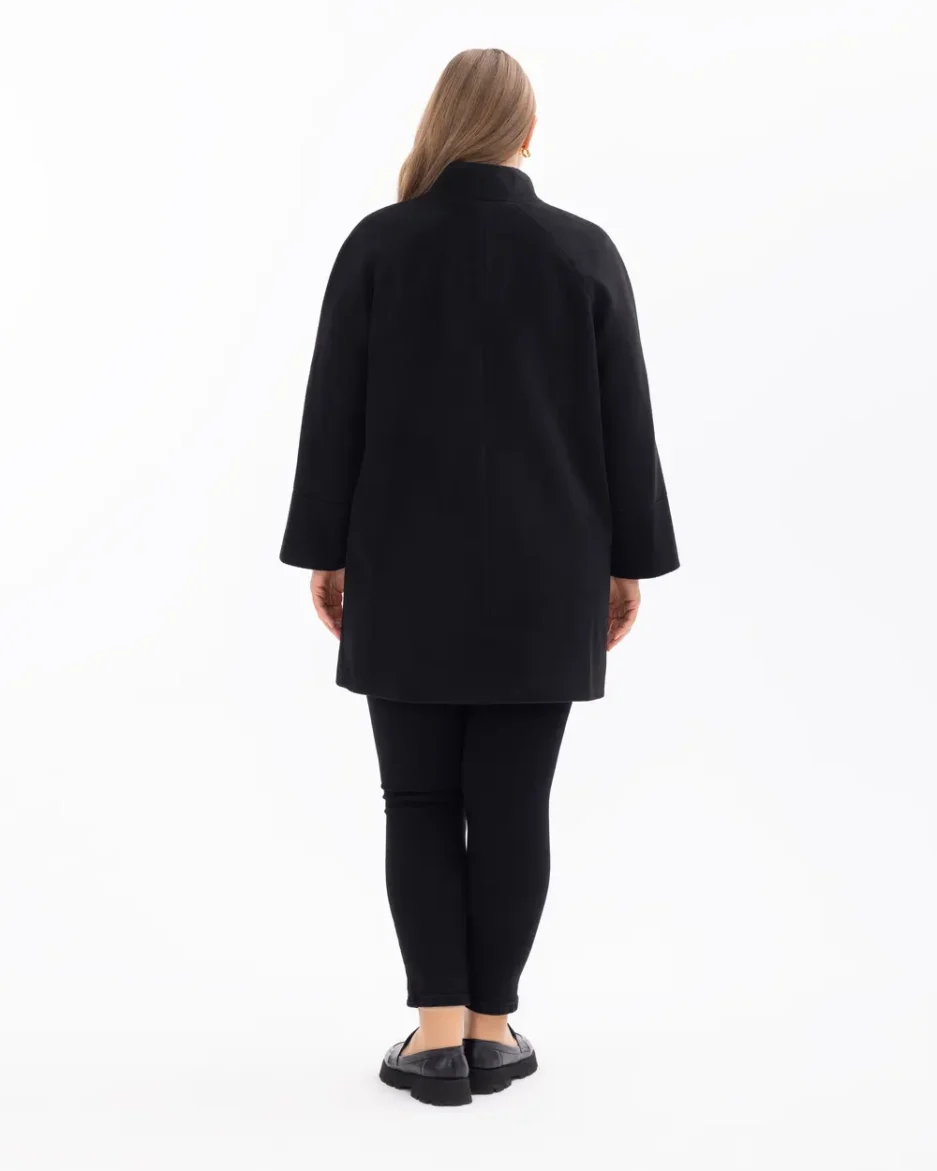 Большой размер пальто с воротником, карманами и пуговицами, черное, удобный и стильный, идеален для повседневного использования