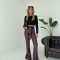 Бордовые кожаные брюки с расклешенными штанинами и разрезами, размер S, длина 115 см, внутренняя длина 85 см, идеальная посадка