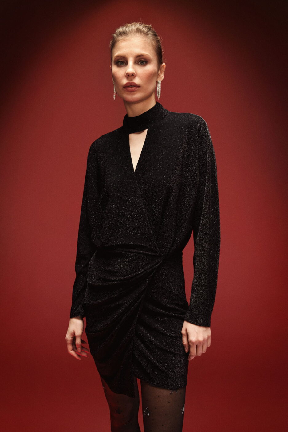 Черное мини-платье с длинными рукавами и окном спереди от MAVI, размер XS, L, с застёжкой на молнию и регулярным кроем