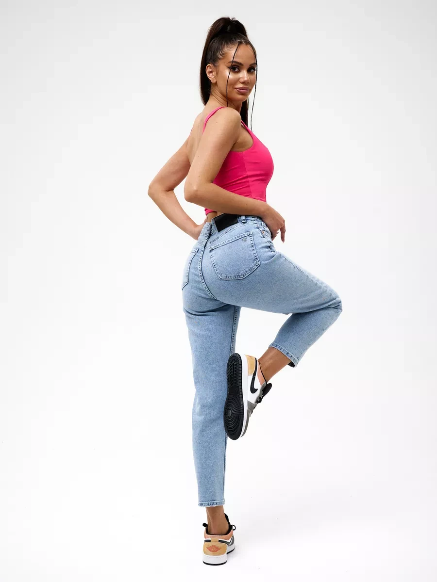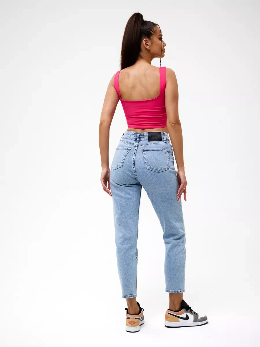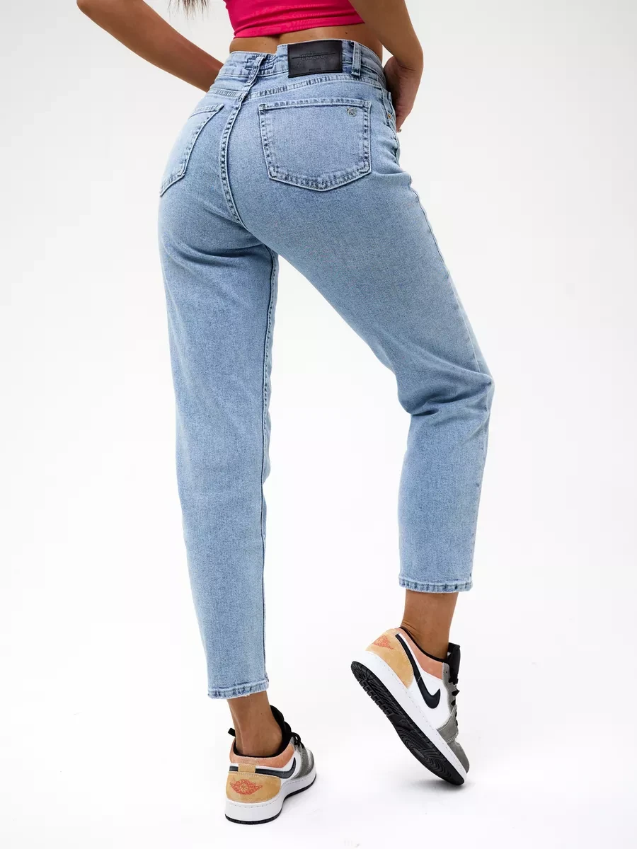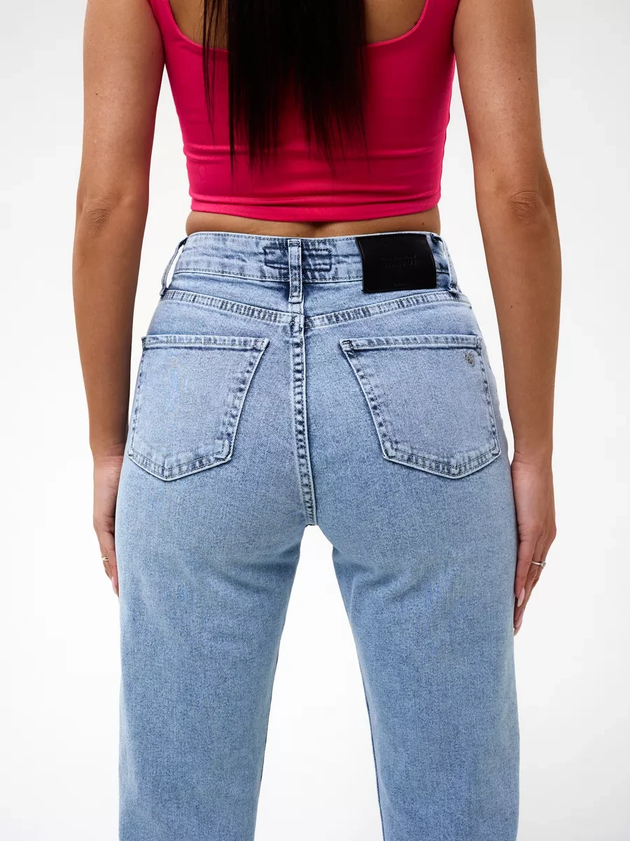 Джинсы МОМ прямые с потертостями Cracpot