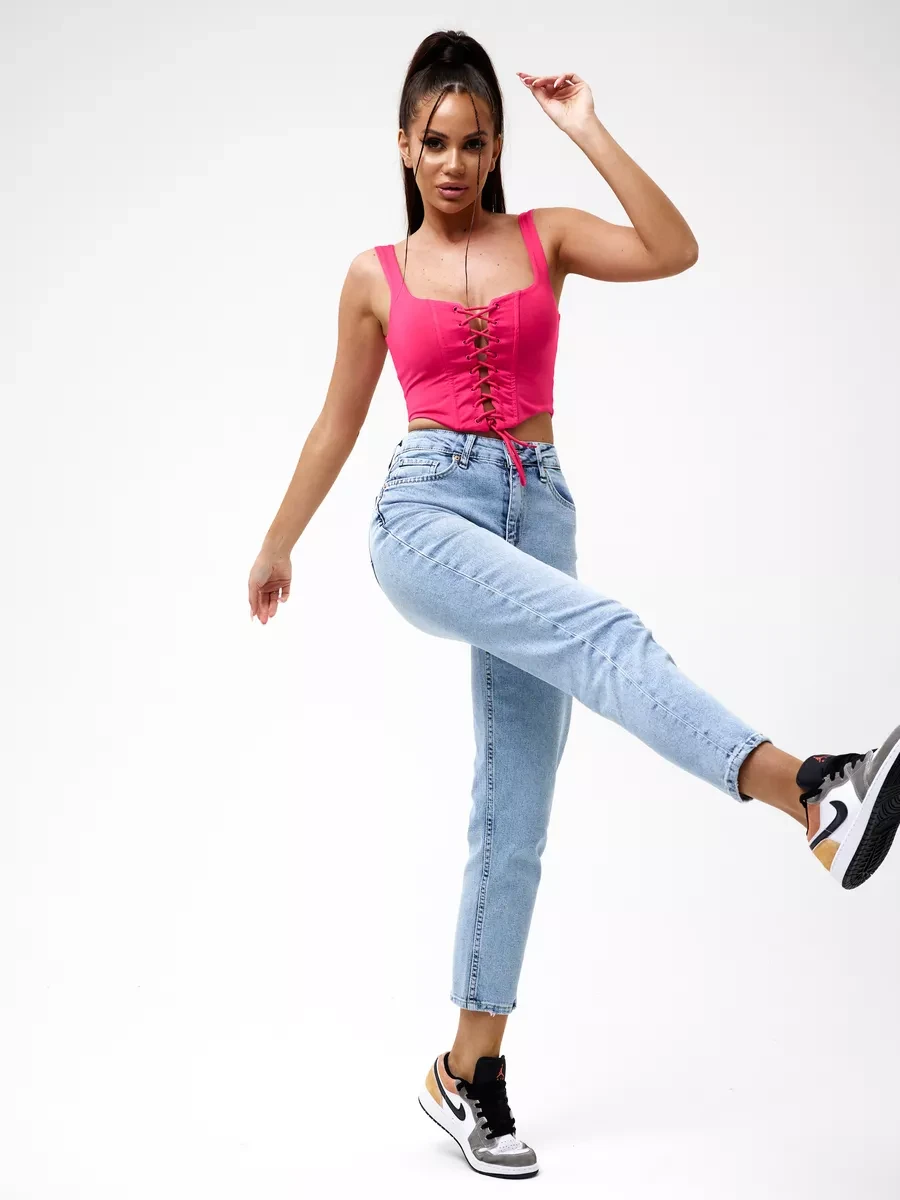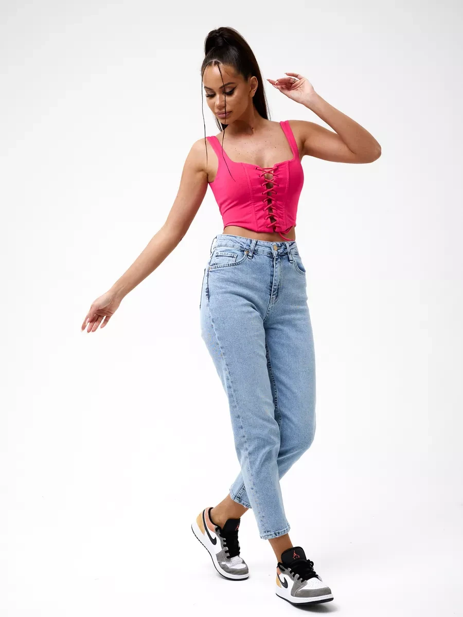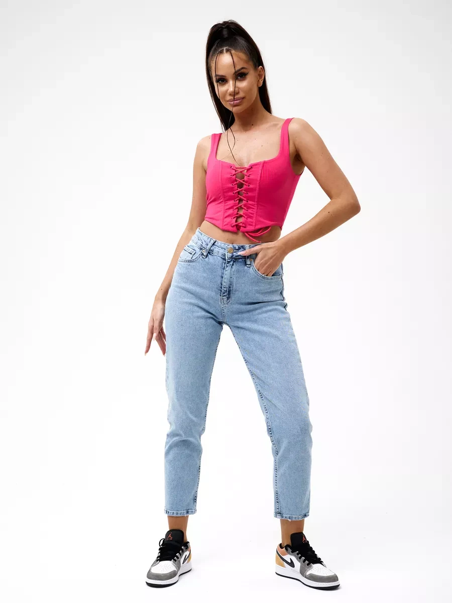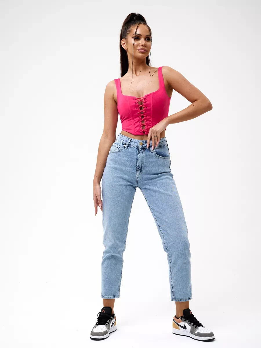 Джинсы МОМ прямые с потертостями Cracpot