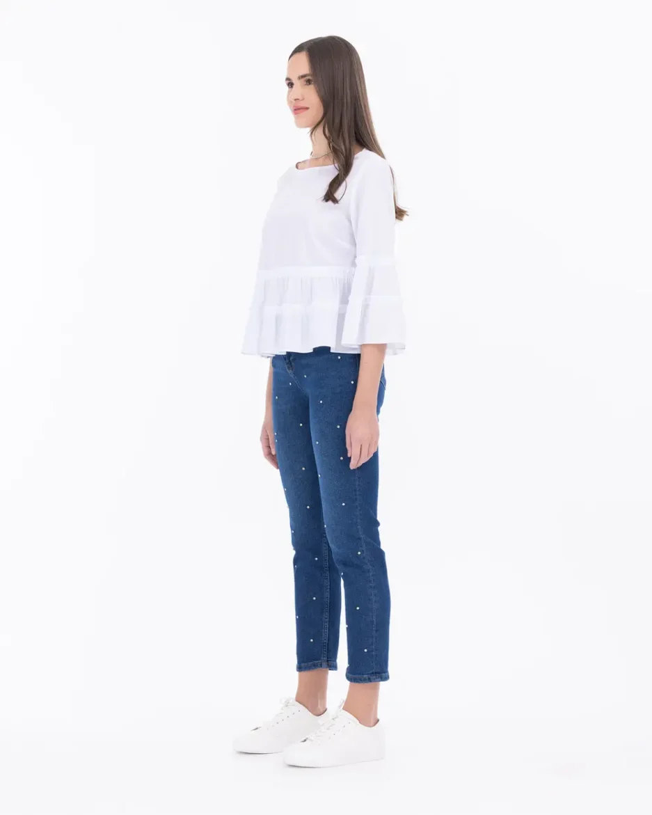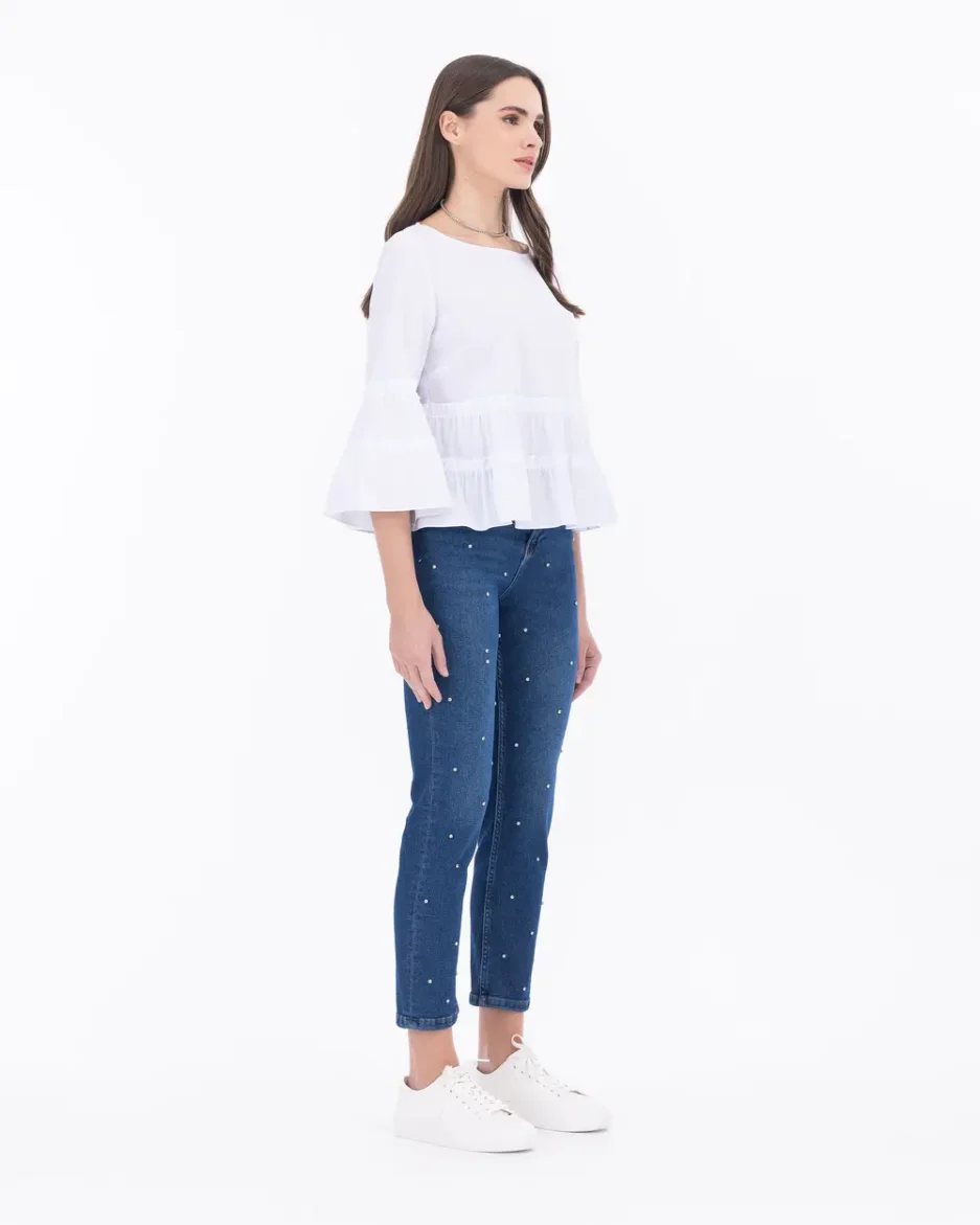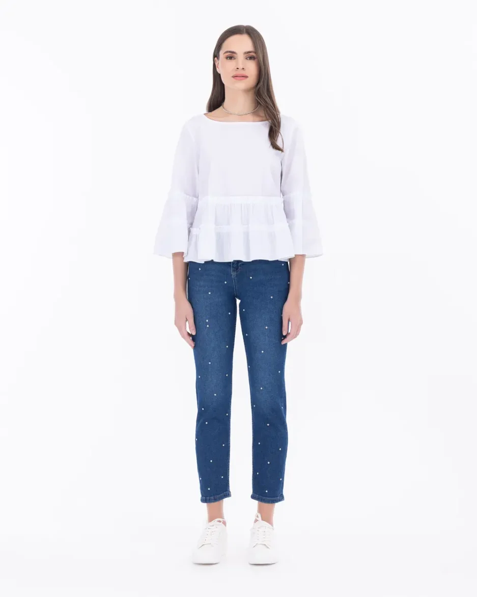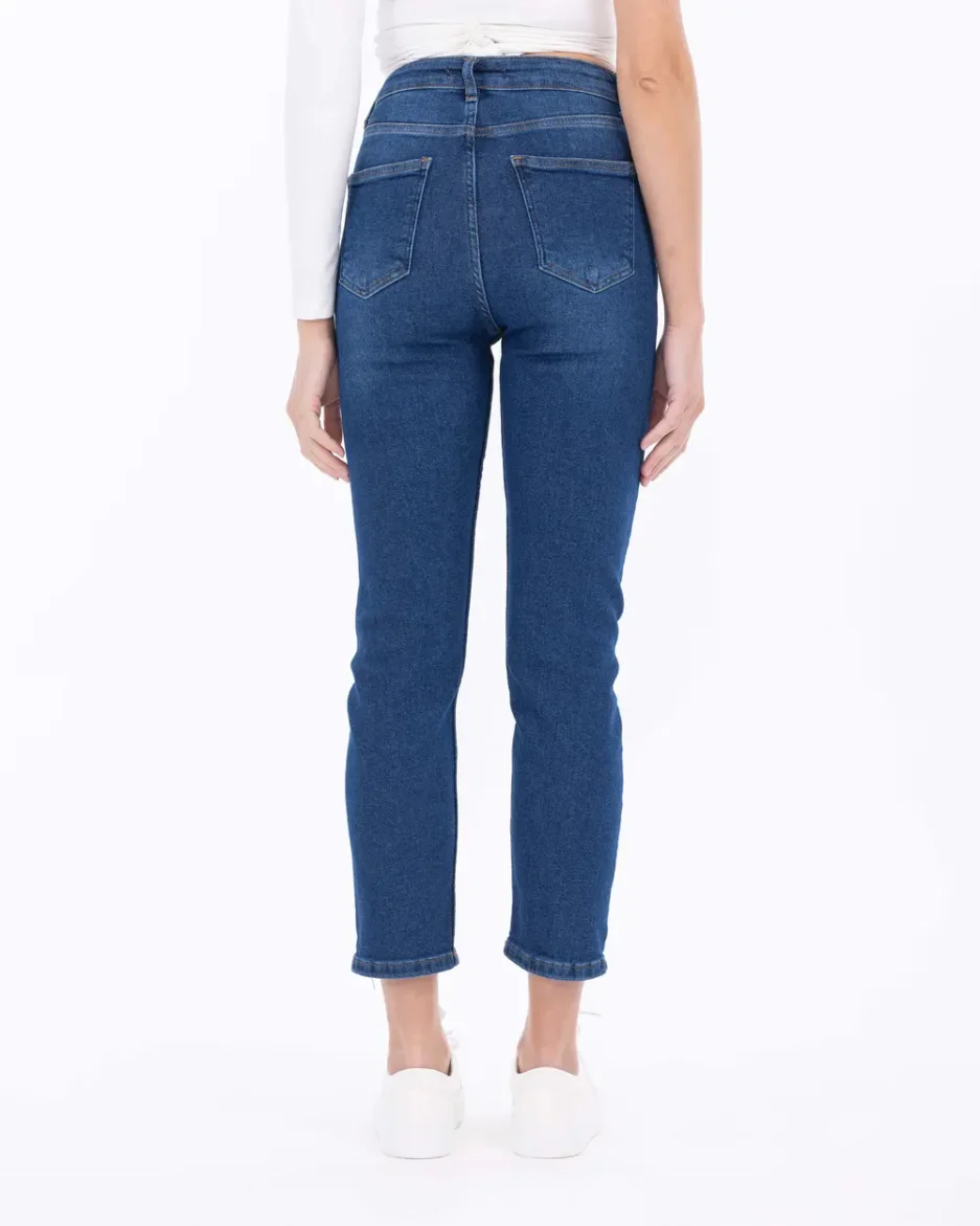 Джинсы с каменной отделкой, бойфренд, облегающие, 98% хлопок, 2% эластан, цвет: синий, размер: 36, идеальны для стильного образа