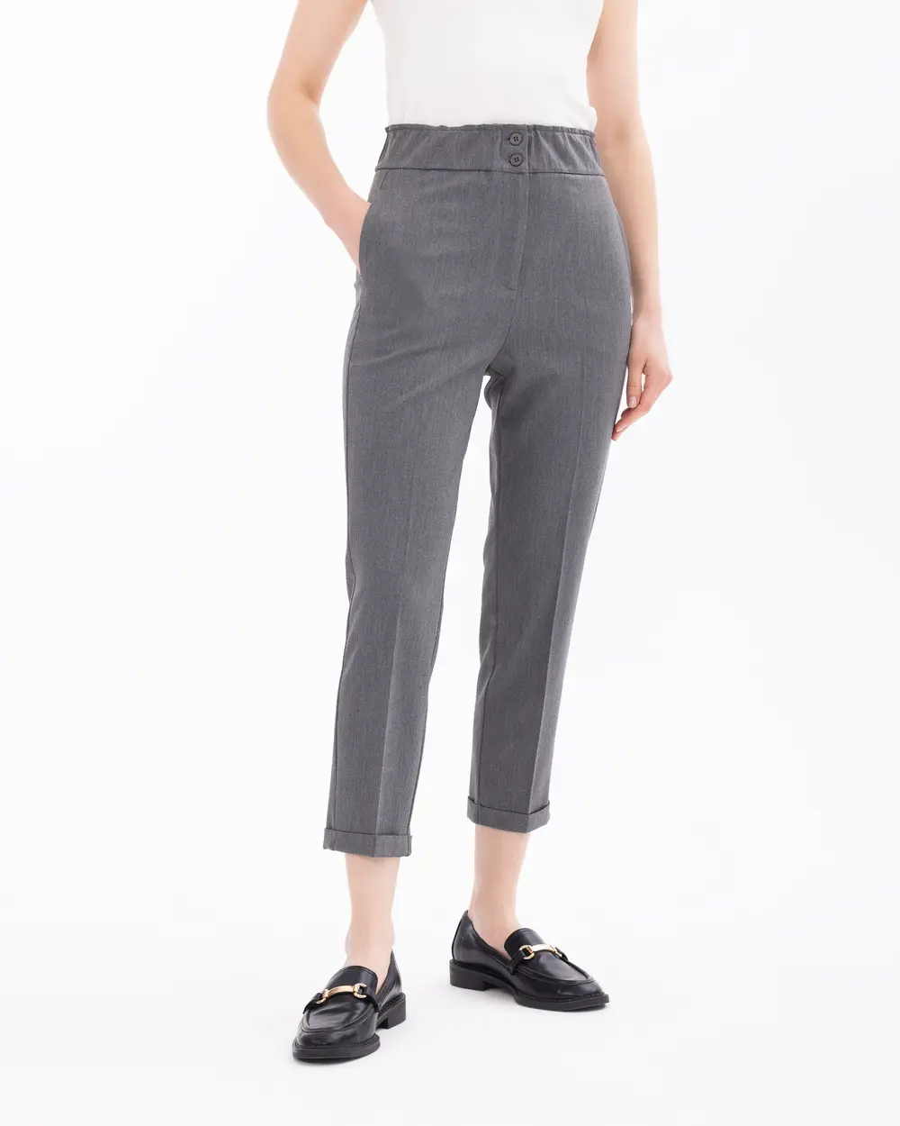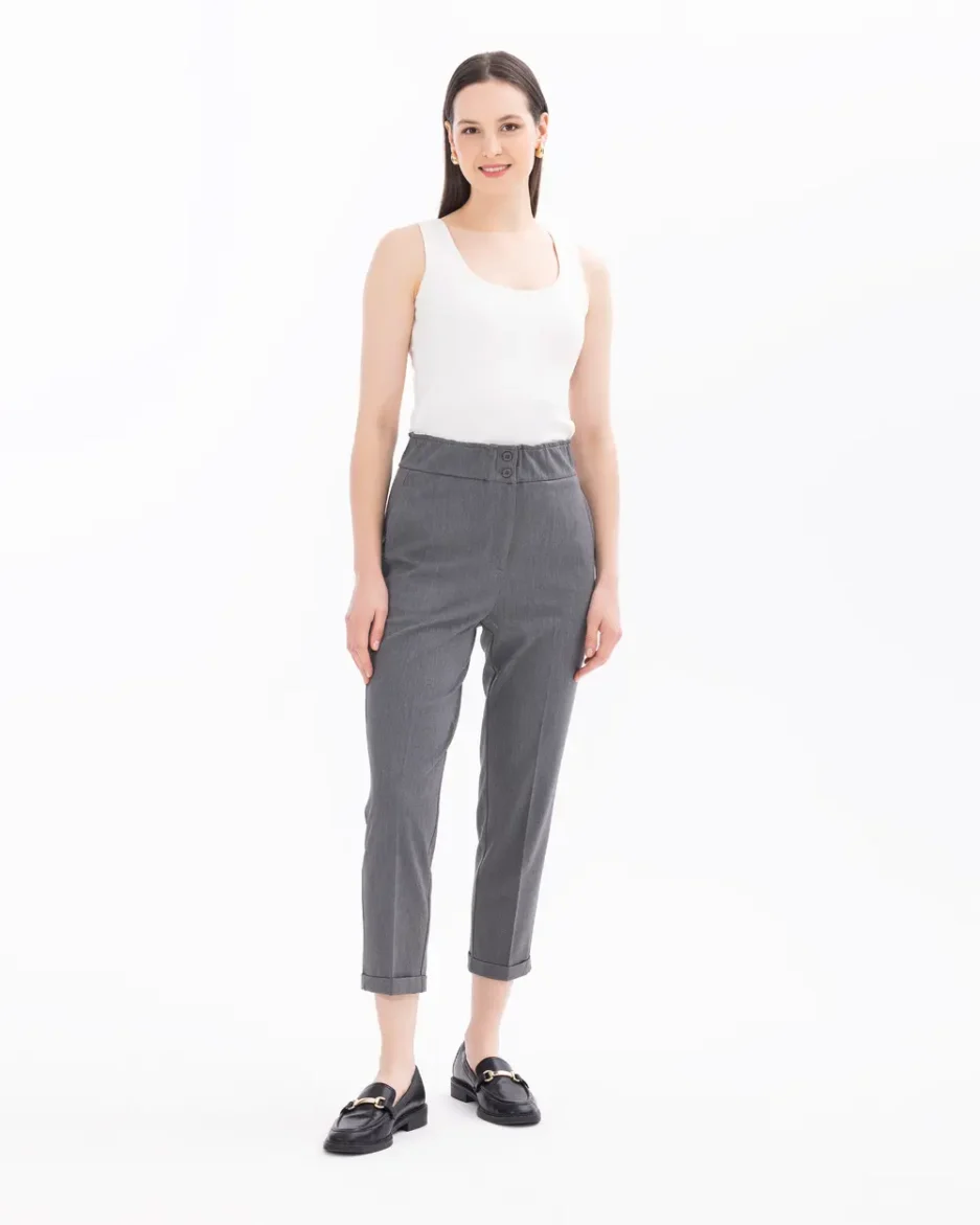Эластичные брюки длиной до щиколотки с завышенной талией, комфортные и стильные для повседневной и праздничной одежды, размеры 36, цвет: антрацитовый, серый