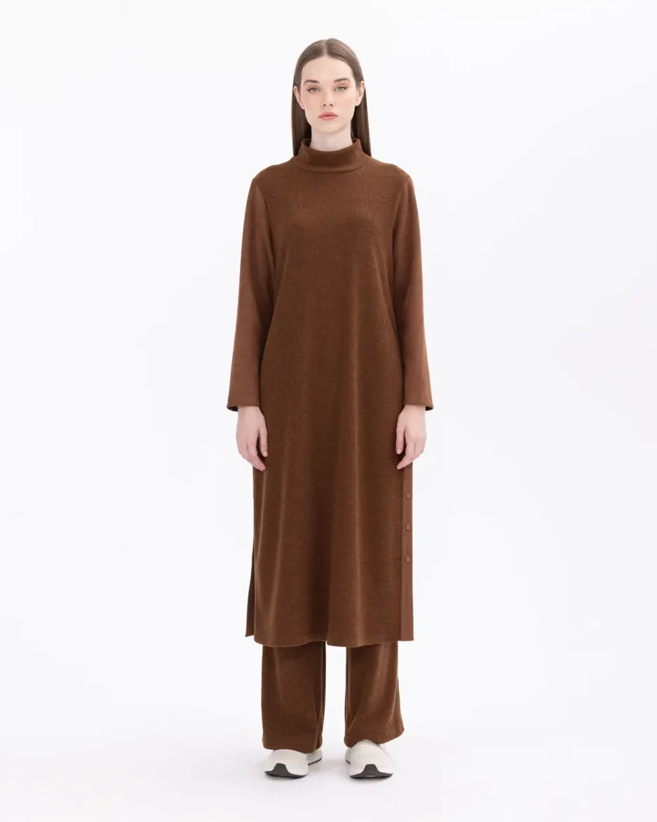 Эластичные брюки полного размера с комфортным кроем и коричневым цветом для стильного и удобного ношения