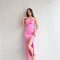 Элегантное розовое сатиновое платье с тонкими бретелями и драпировкой на груди, длина 132 см, размер L, M