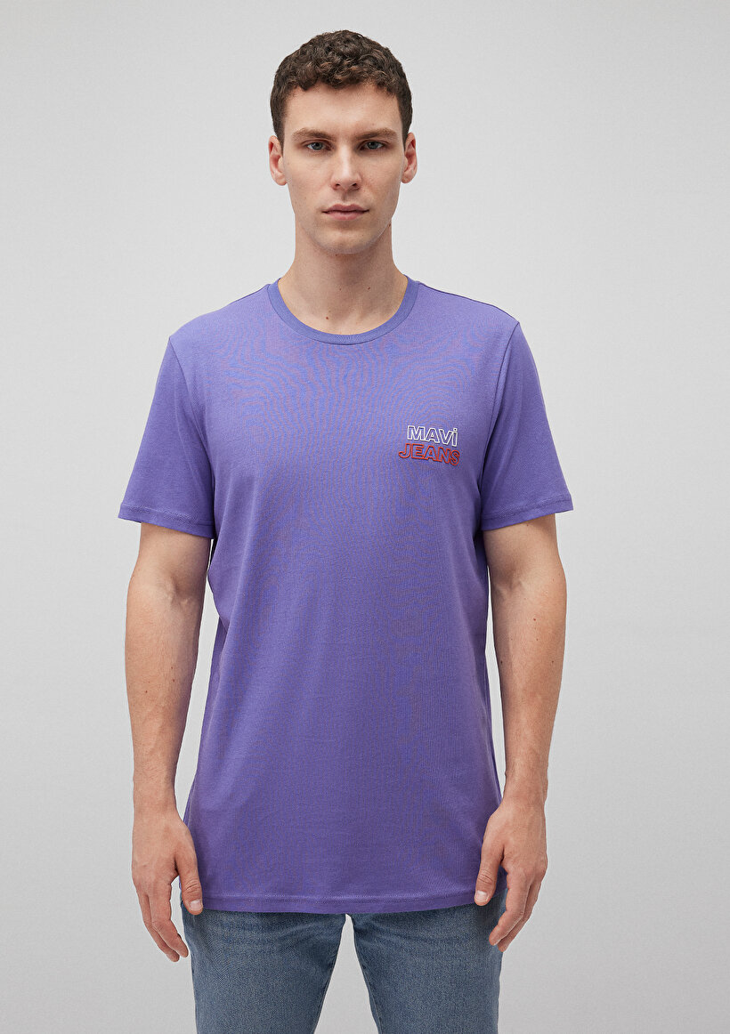 Фиолетовая футболка с логотипом Mavi Jeans из 100% хлопка, доступна в размерах S, M, L, XL