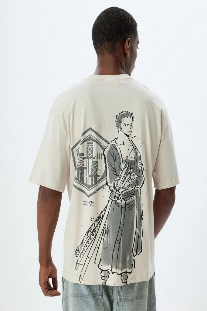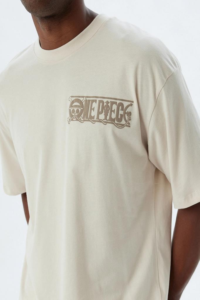 Футболка Koton One Piece, короткий рукав, круглый вырез, 100% хлопок, лицензированная, стильный бежевый цвет