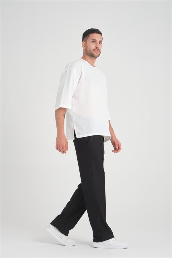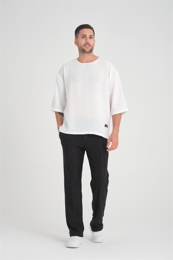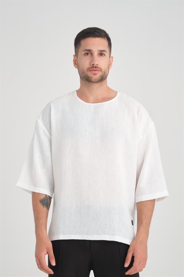 Футболка с круглыми вырезом и коротким рукавом Fakir Kol Oversize Белого цвета от Valiberta, стильный и удобный выбор для вашего гардероба