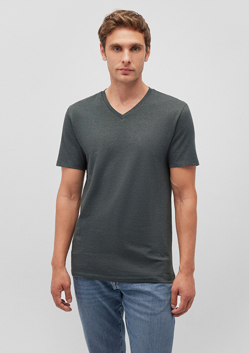 Футболка Stretch зеленого цвета с V-образным вырезом от MAVI, облегающая, короткий рукав, эластичная ткань для комфорта