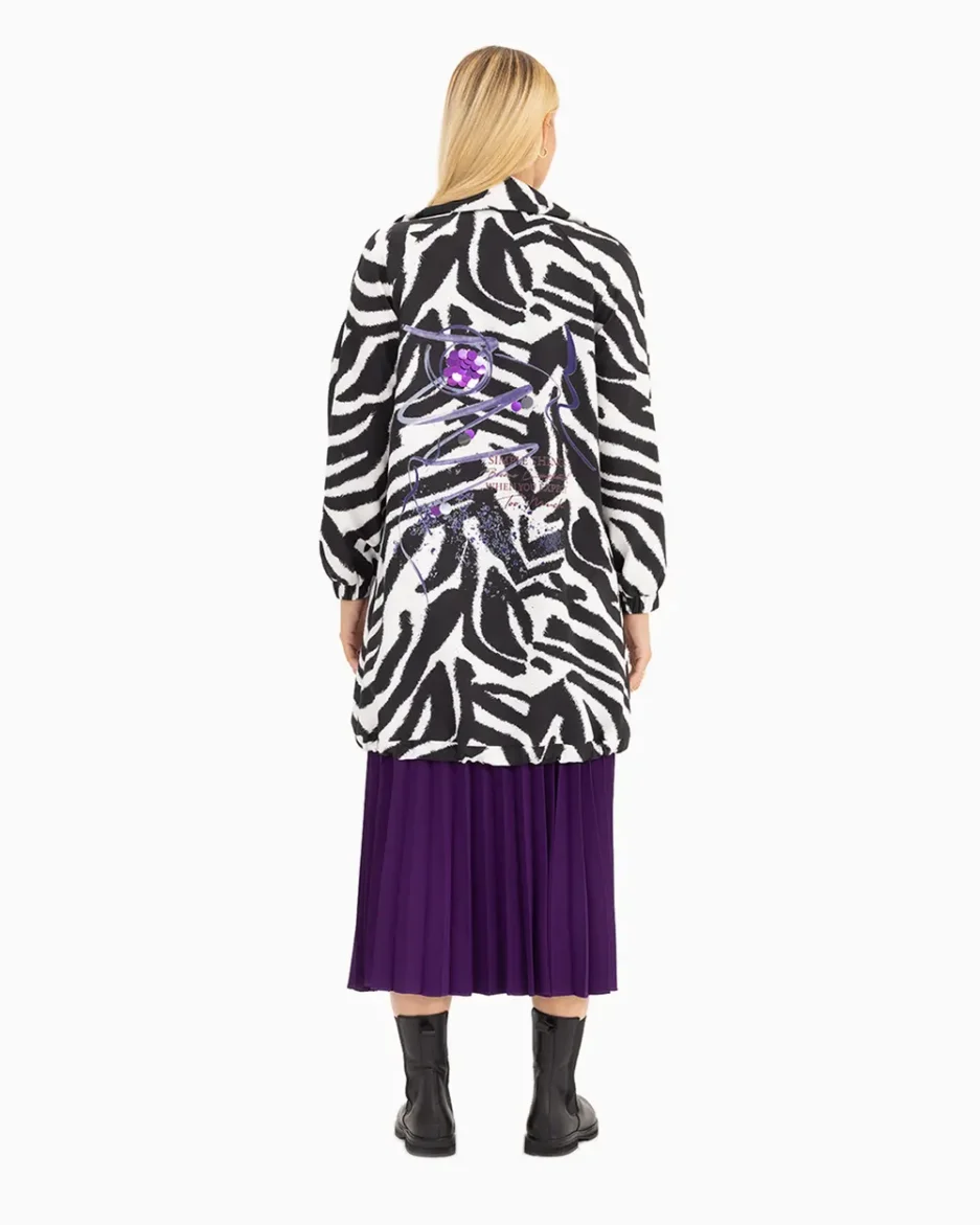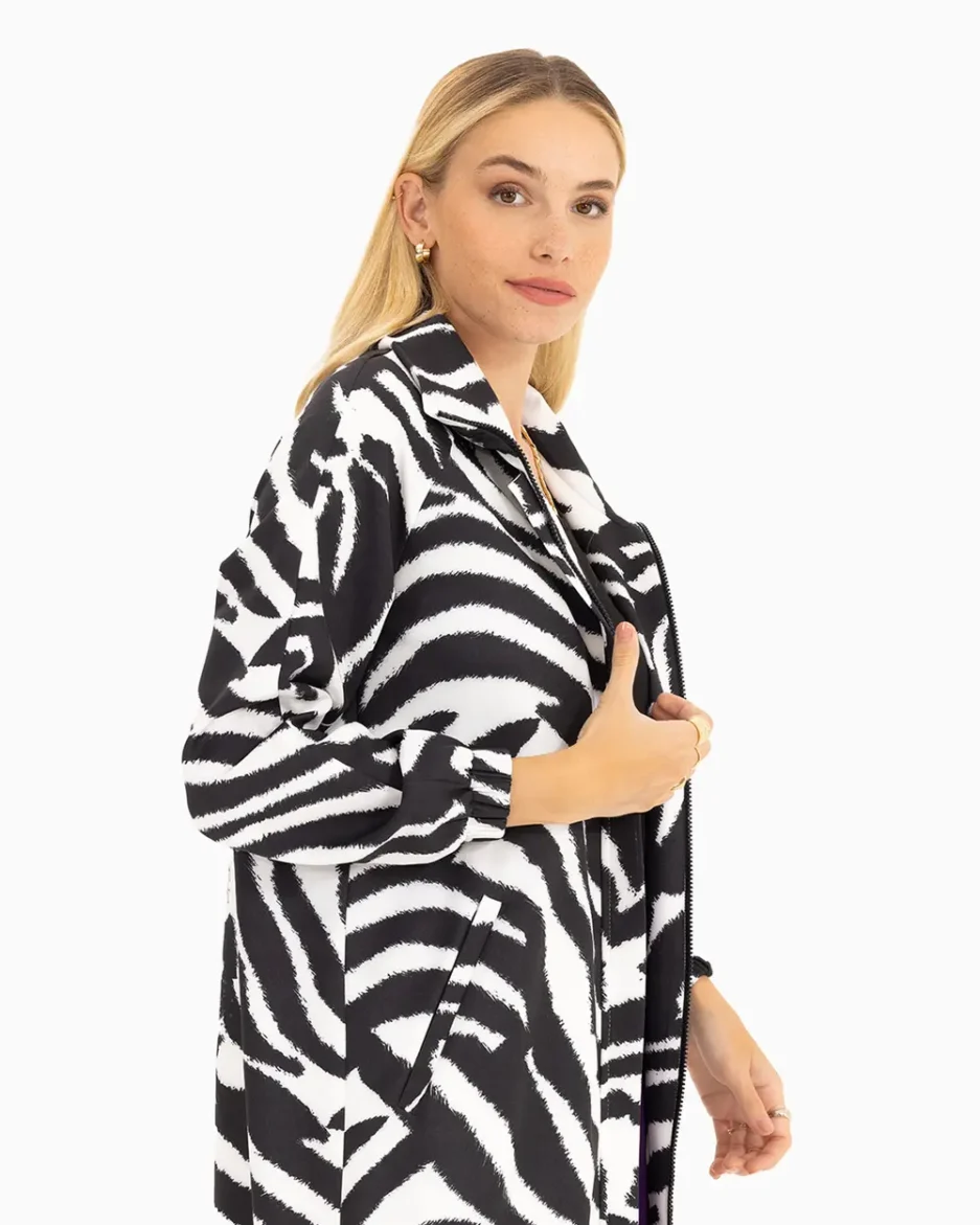Кимоно с рисунком зебры, длинные рукава, воротник, без подкладки, 100% полиэстер, стильный уличный дизайн, черный цвет, размер 36