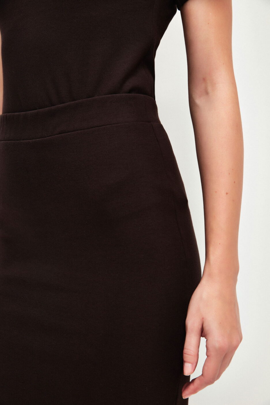 Коричневая юбка с резинкой на талии из 68% вискозы, 27% нейлона и 5% спандекса, повседневный стиль, высокий пояс, размер XS
