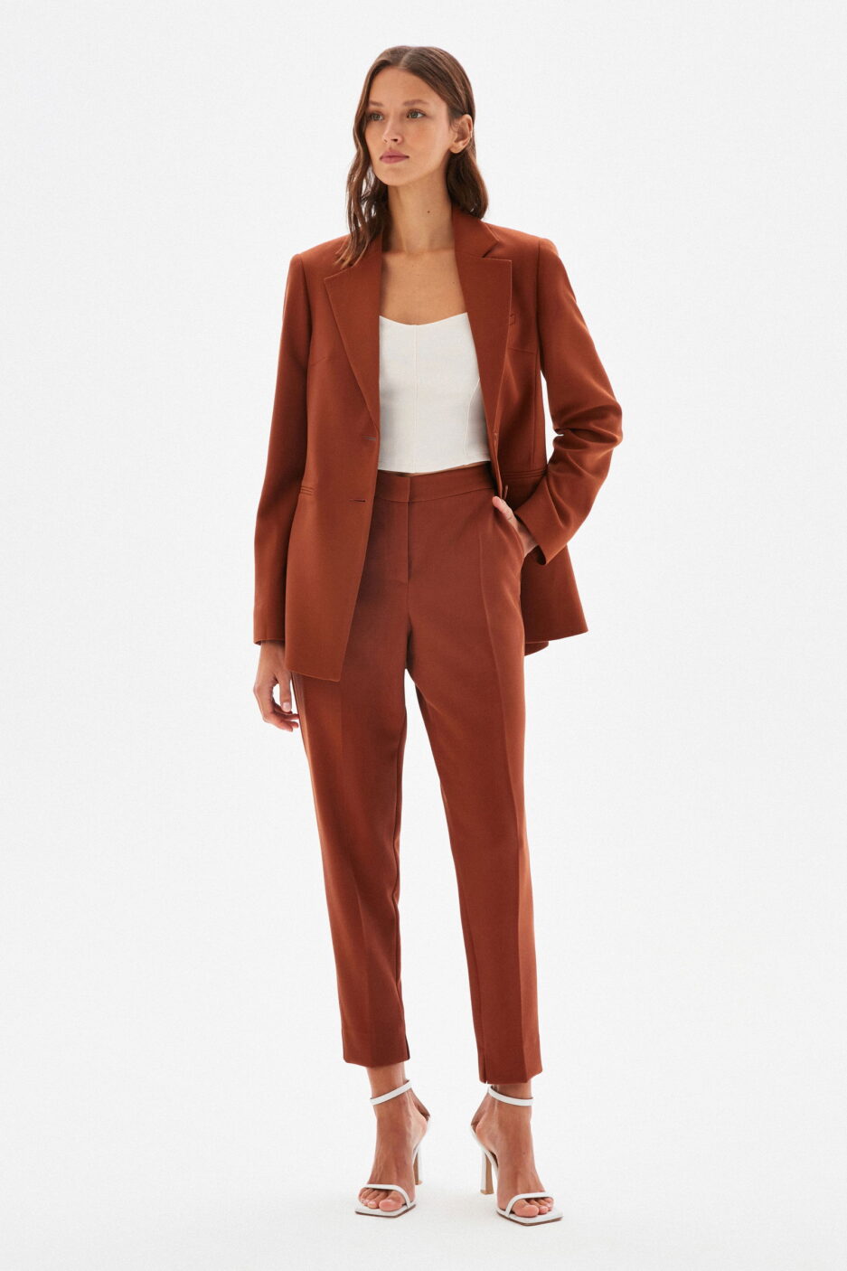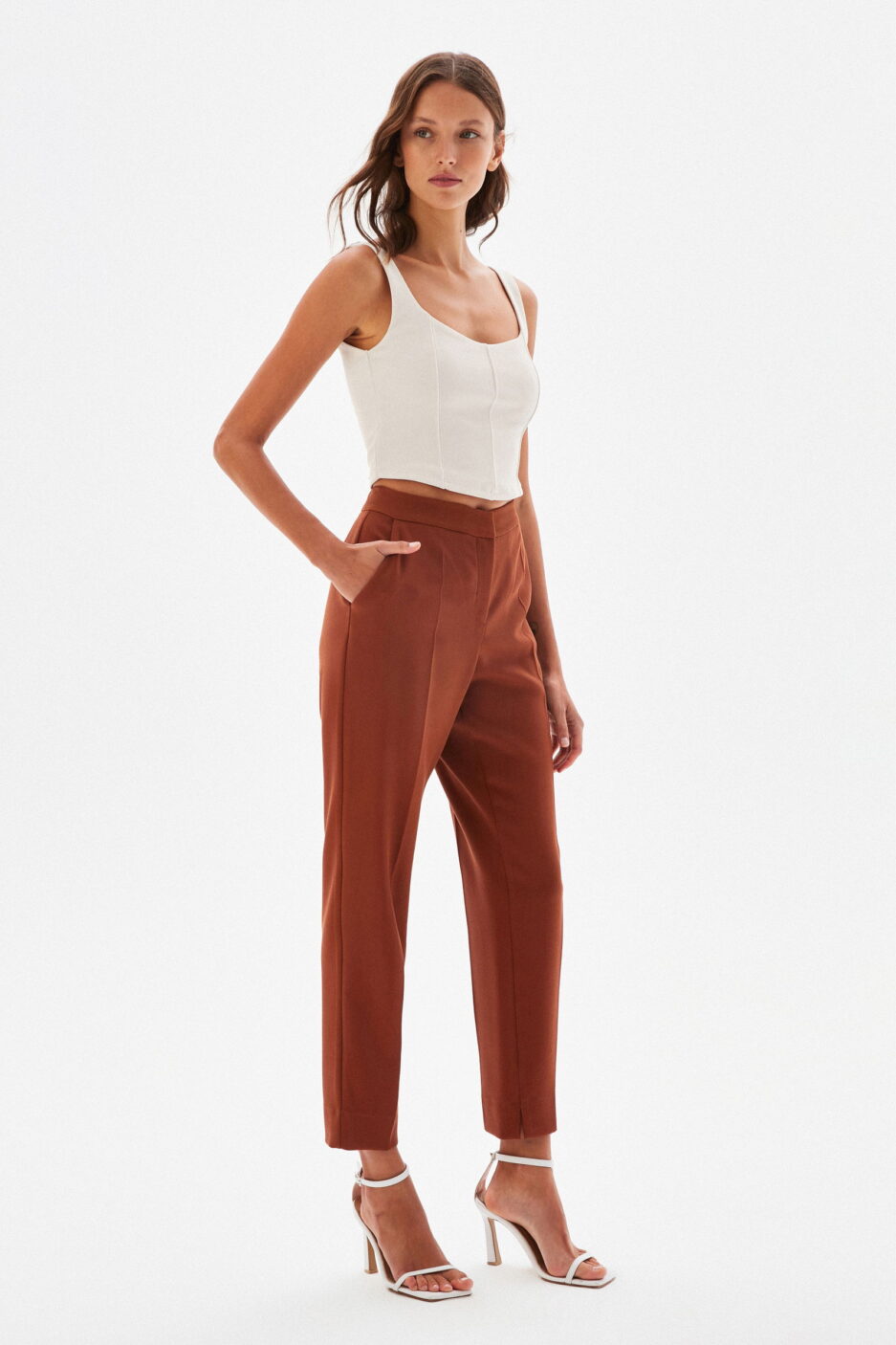 Коричневые брюки Mary с разрезами на штанинах, замковыми карманами, высокой талией. 63% полиэстер, 31% вискоза, ежедневный стиль.