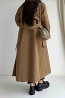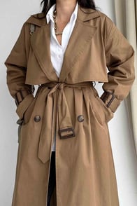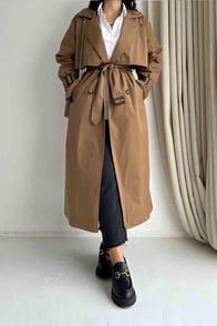 Коричневый тренчкот с детальным съемным поясом, идеален для любого времени года, выделитесь с оригинальными деталями упаковки