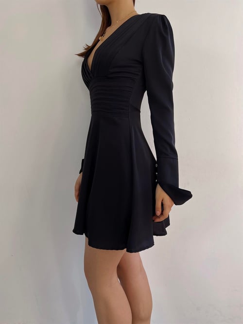 Кружева с воланами и длинным рукавом черное платье для женщин, размеры S и M