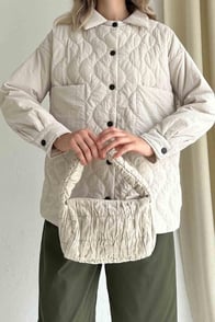 Куртка бежевого цвета с карманами, короткая, стеганая, размер S-M