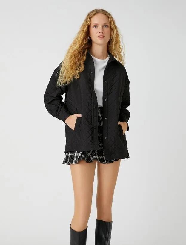 Куртка Koton для женщин с капюшоном, короткая, на застежке-кнопке, черная, размер 36-38