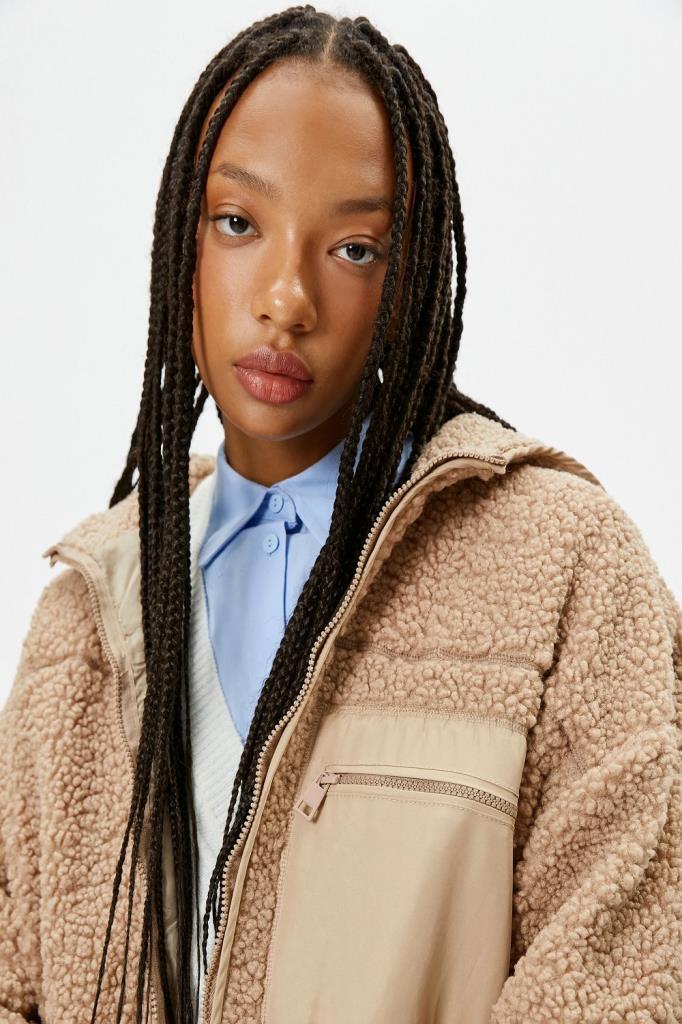 Куртка-пуховик с капюшоном из плюша, с двумя различными тканями и карманами, великолепный выбор для стильного образа