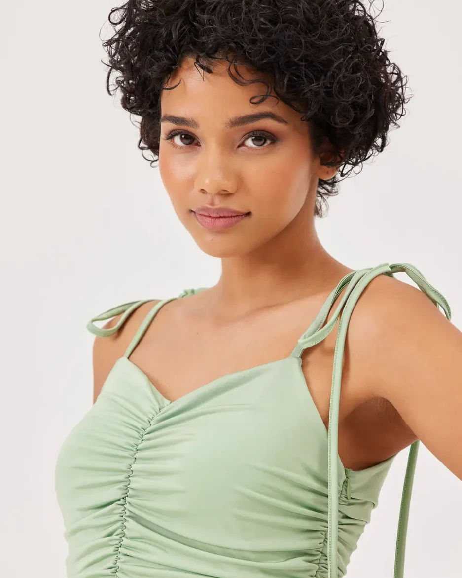 Мини-платье с бретелями и сборками, идеальное для вечеринок и особых случаев, в мятном цвете, коллекция 2023 года