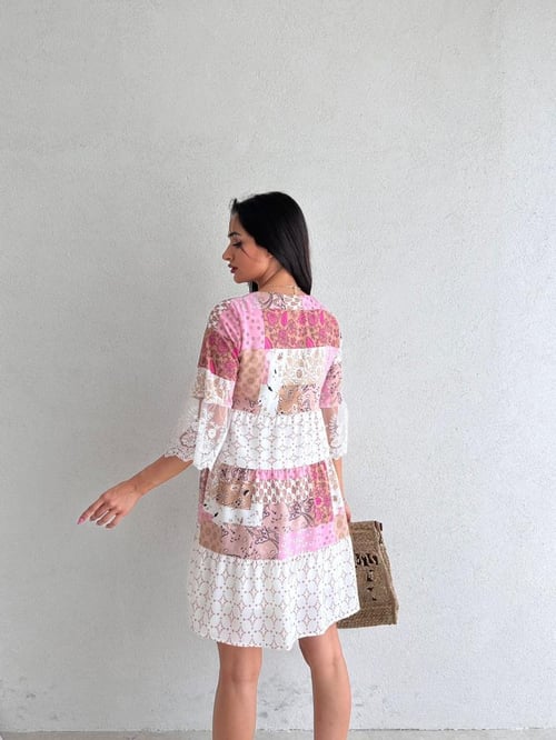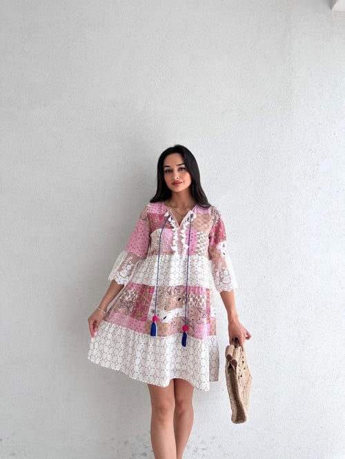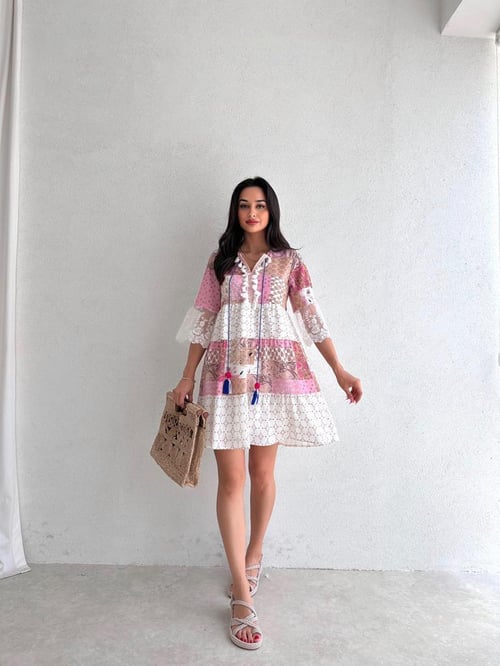 Мини-платье с отделкой кружевом, розовое, подкладка, длина 87 см, доступны размеры S, M, L