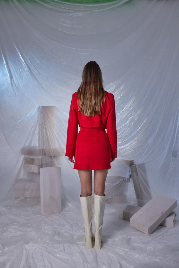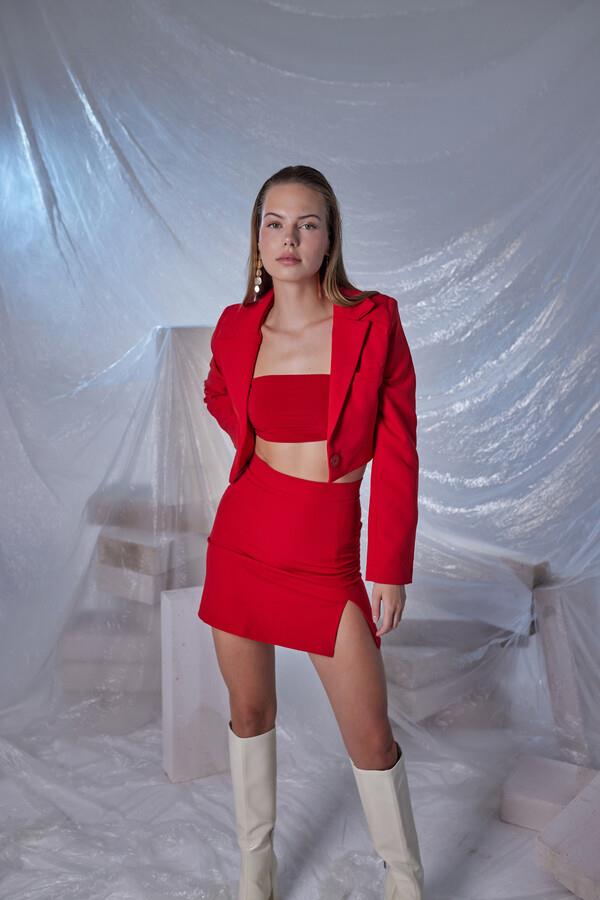 Мини-юбка Panky красного цвета с разрезом, состав ткани 100% полиэстер, доступные размеры XXS, S, XS, M, L