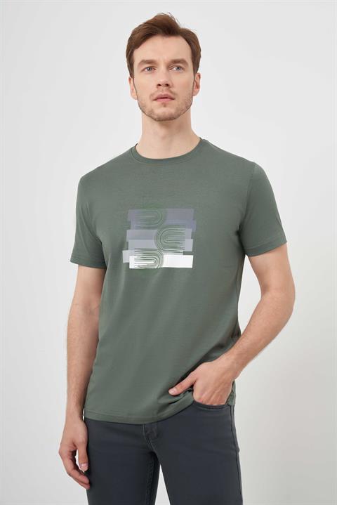 Мужская футболка с принтом хаки, динамичный крой, 100% хлопок, короткие рукава, размеры S и L