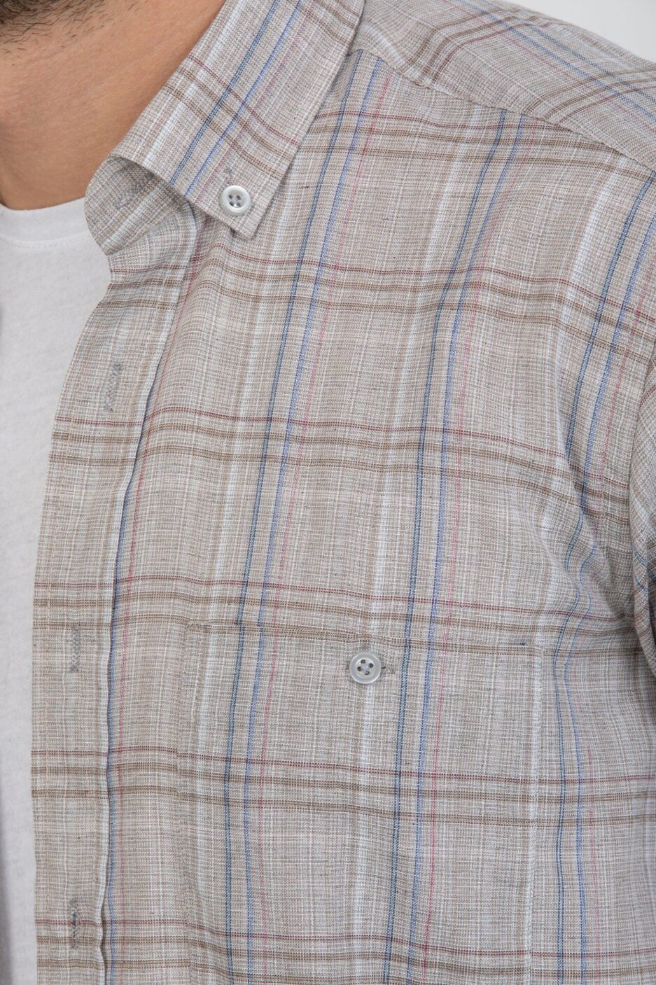 Мужская короткоканна рубашка Varetta бежевого цвета с карманом и классическим свободным кроем, 100% Турция