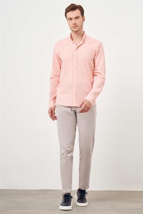 Мужская оранжевая лениваная рубашка с пуговками, Slim Fit, без карманов, 70% хлопок, 30% лен, длинные рукава