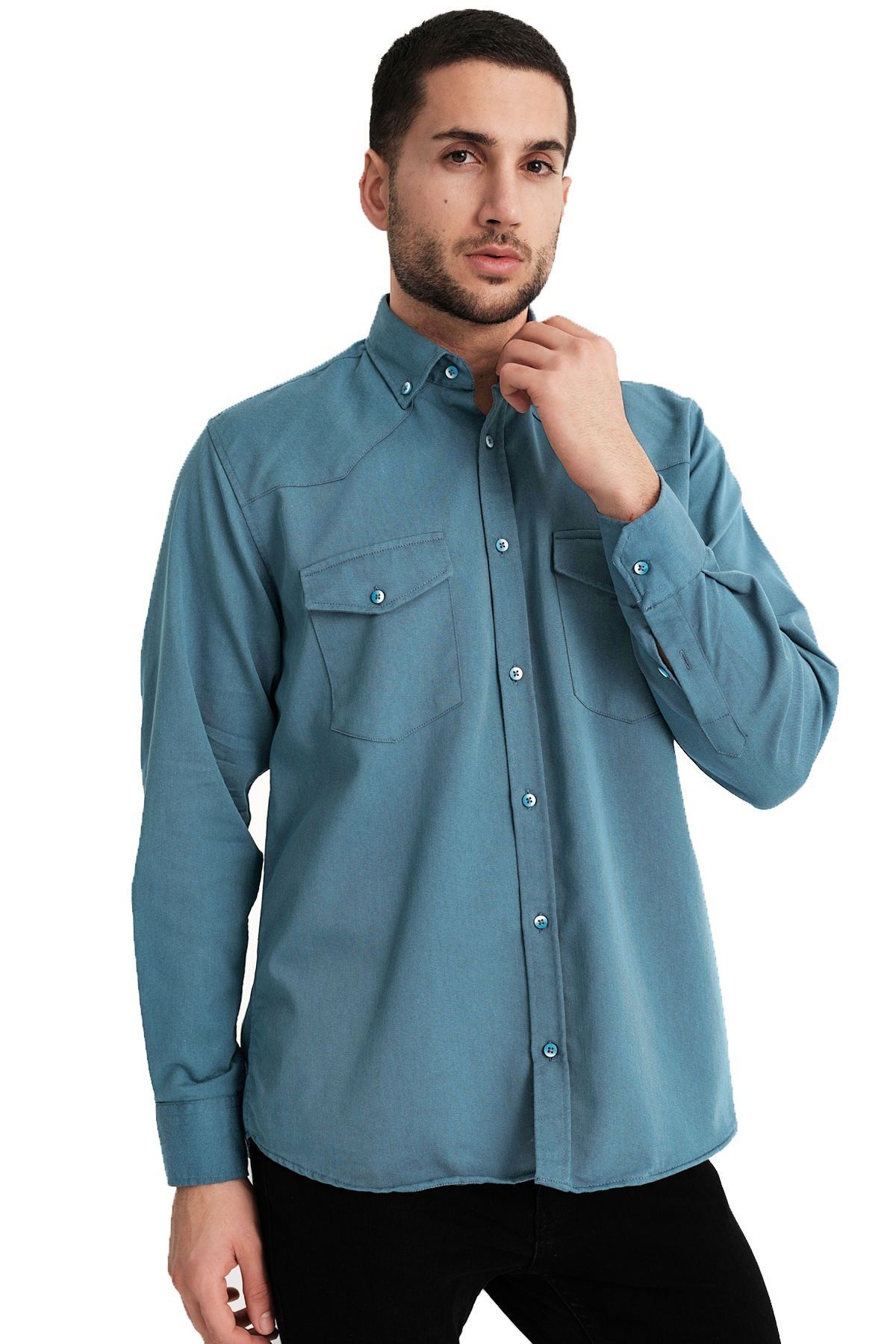 Мужская рубашка Varetta из ткани габардин, модель Lewis, бирюзовая, с двойными карманами, стильная и удобная, легкая в уходе