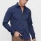 Мужская темно-синяя рубашка Slim Fit с классическим воротником и длинным рукавом, хлопково-полиэстеровая смесь, без карманов