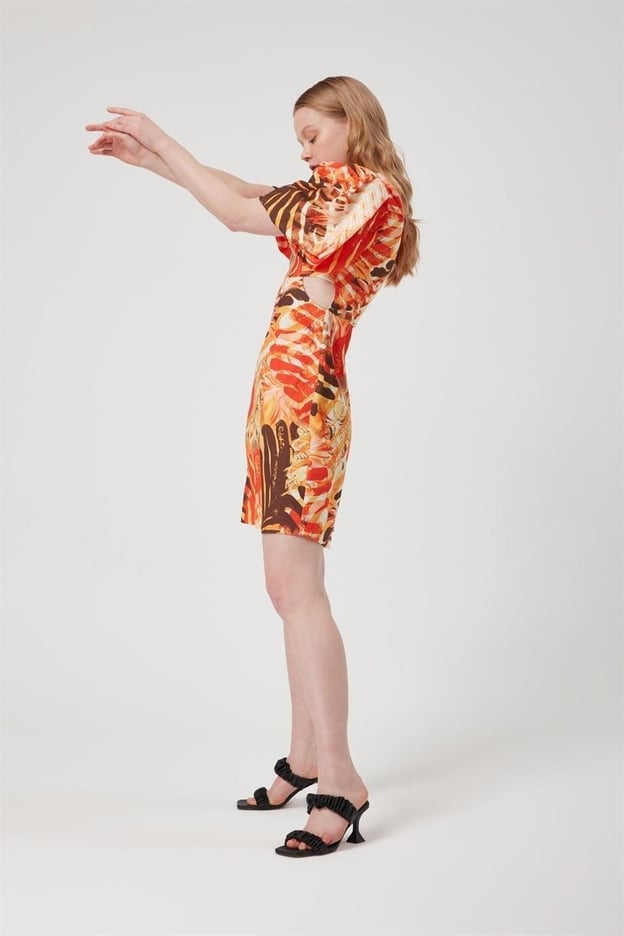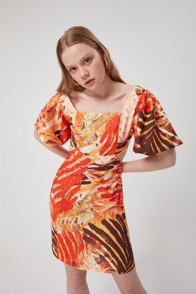 Объемное мини-платье с оранжевыми рукавами, 100% полиэстер, длина 93 см, размер 40-42