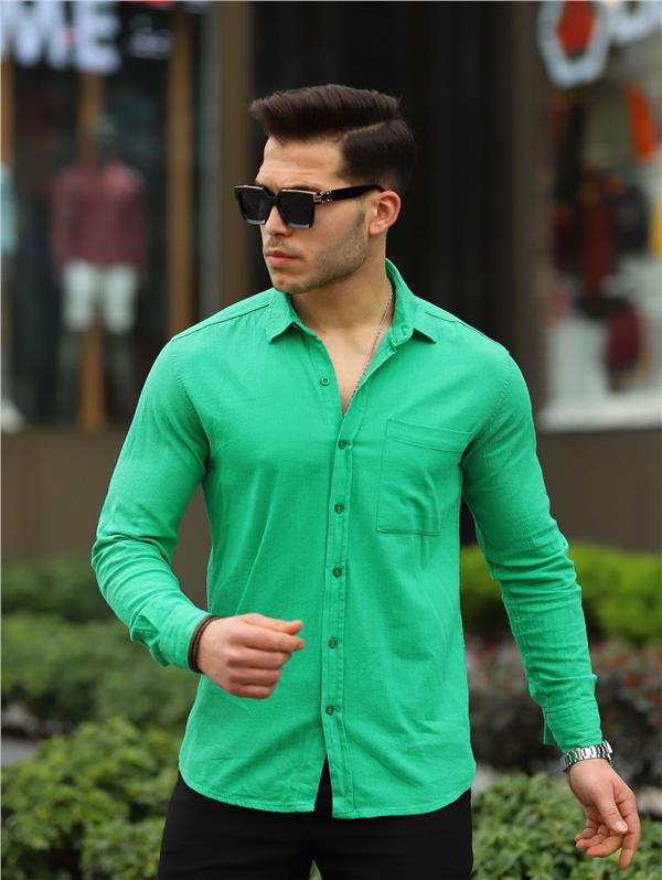 Одноигольная рубашка из шиле – мятный цвет, комфортный крой, идеально подходит для повседневного ношения с брюками чино или джинсами