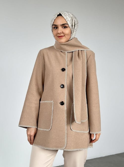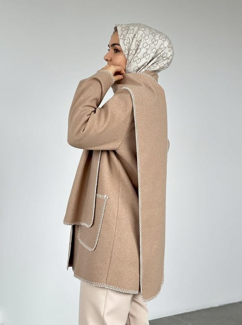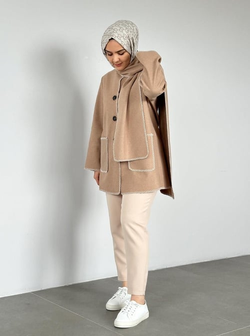 Пальто из кашемира с короткими рукавами бежевого цвета, стандартный размер, высококачественная ткань