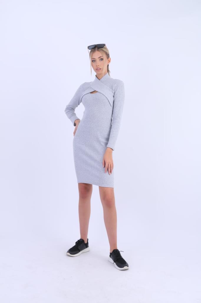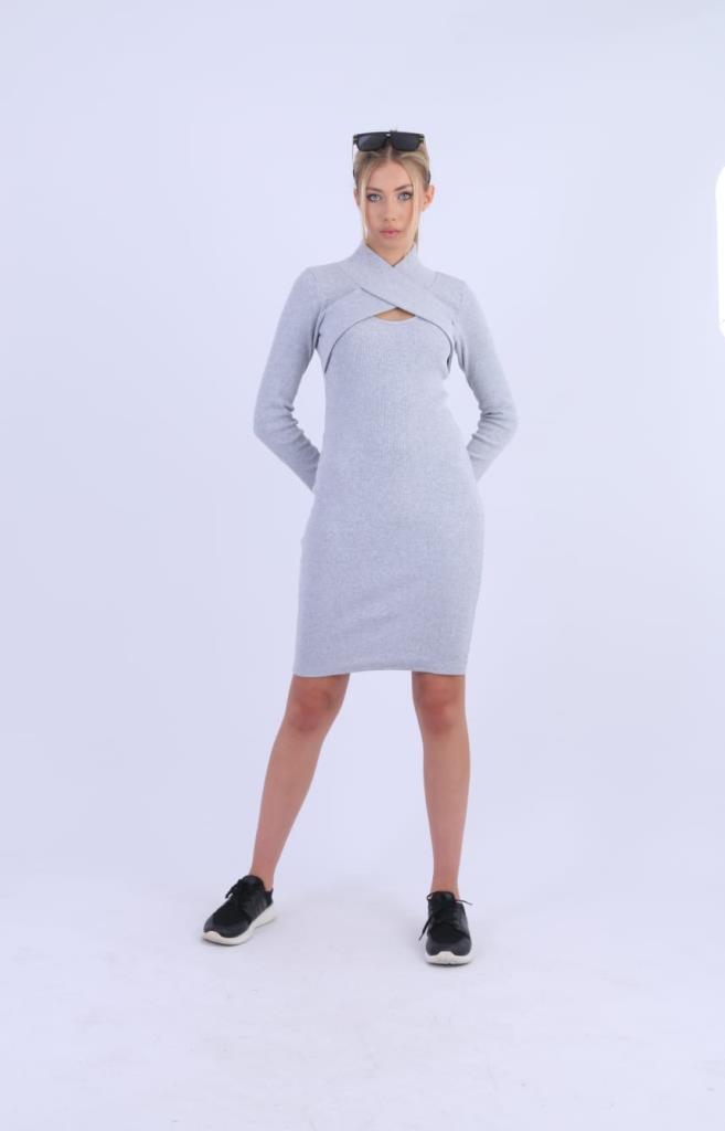 Платье Hipatu с перекрестным воротником, стандартный размер, серая цветовая гамма, обтягивающий лайкра-кашемировый материал