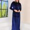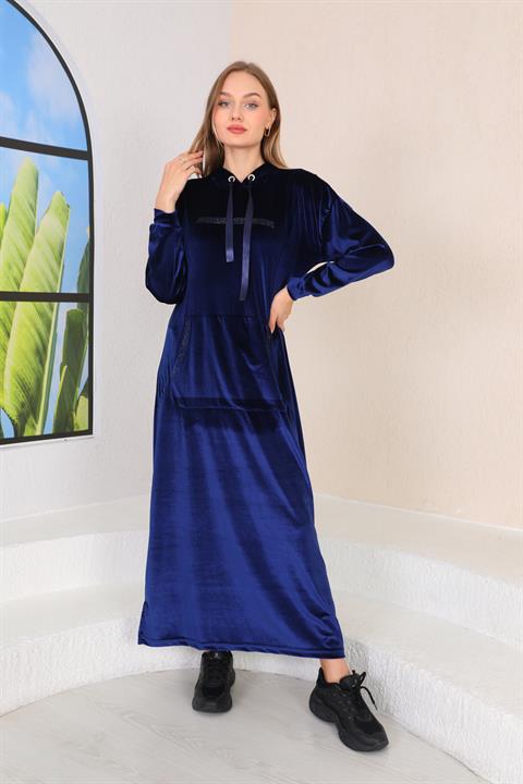 Платье из вельвета тёмно-синего цвета с капюшоном и карманом, украшенное камнями, длина 138 см, подходит для повседневной носки