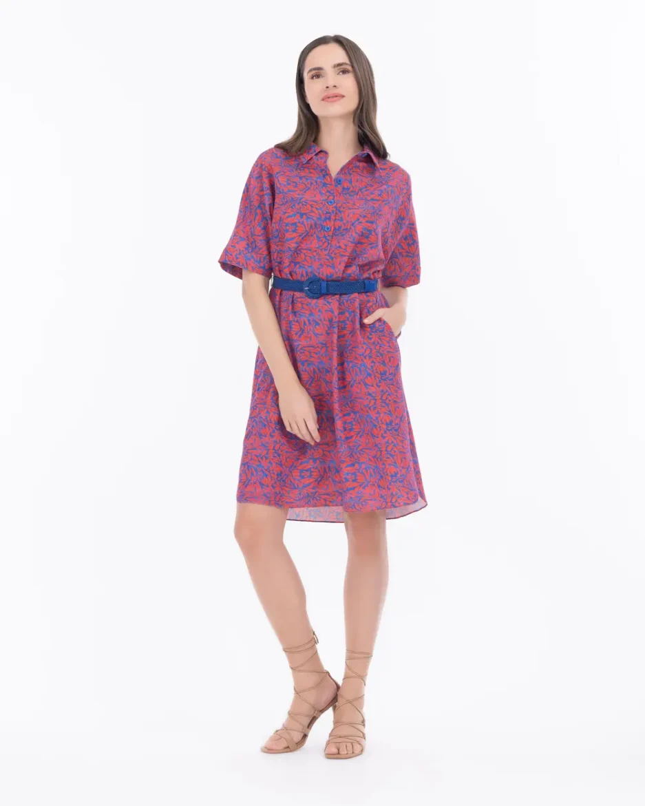 Платье с цветочным рисунком и поэлементным воротником, облегающее фигуру, цвет: мерцающий коралл, короткий рукав, размер 40, 42, 44