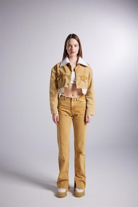 Пострадавшие джинсовые брюки цвета верблюда M/28, XS/24, S/26, L/30