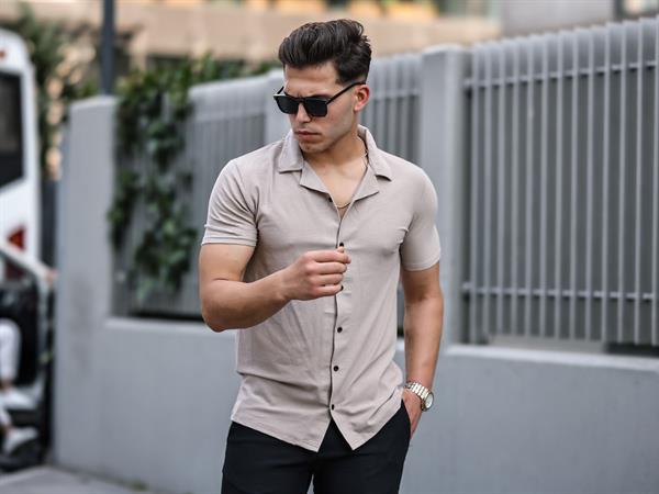 Премиум короткий рукав футболка из натурального хлопка – бежевый, идеальна для комфортного повседневного ношения, доступна в размерах S, M, L, XL