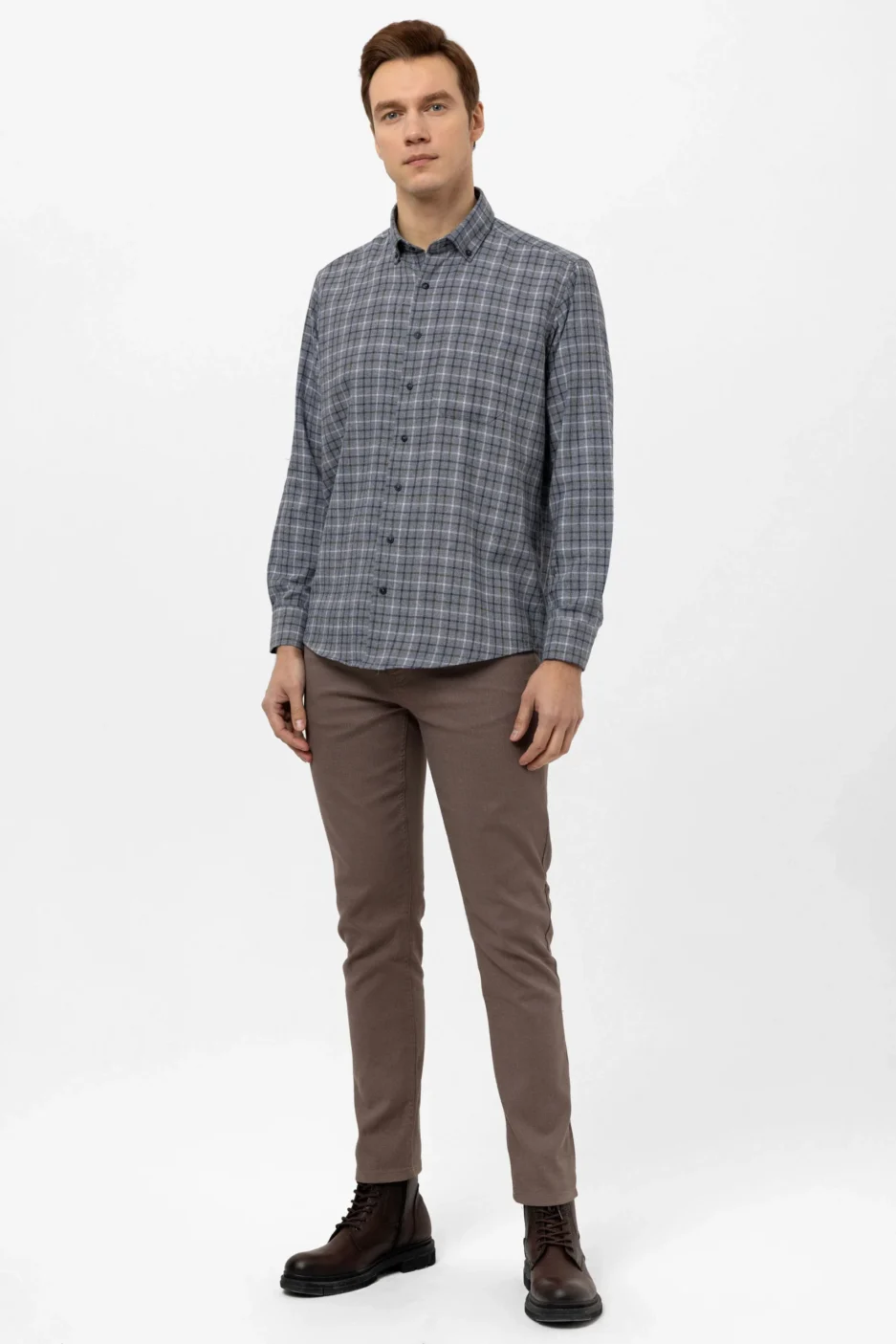 Рубашка с квадратным рисунком, классическая, регулярная, из 50% хлопка и 50% полиэстера, темно-зеленая, доступные размеры L и M