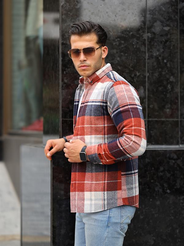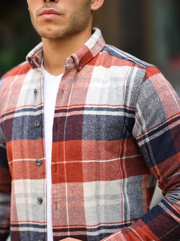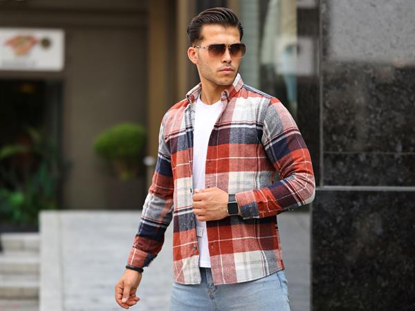 Рубашка в клетку и полоску – оранжевая, 100% хлопок, дышащая ткань, терморегуляция, идеальна для повседневной носки, размеры S-XXL