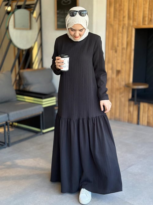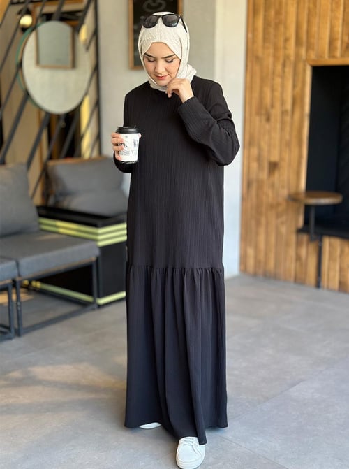 СARA С ЧЕРНЫМ СБОРНЫМ ПЛАТЬЕМ, РАЗМЕР 1(36/38/40), БУРЮМЧУКОВАЯ ТКАНЬ, ИДЕАЛЬНАЯ ДЛЯ ЛЕТНЕНИХ ДНЕЙ