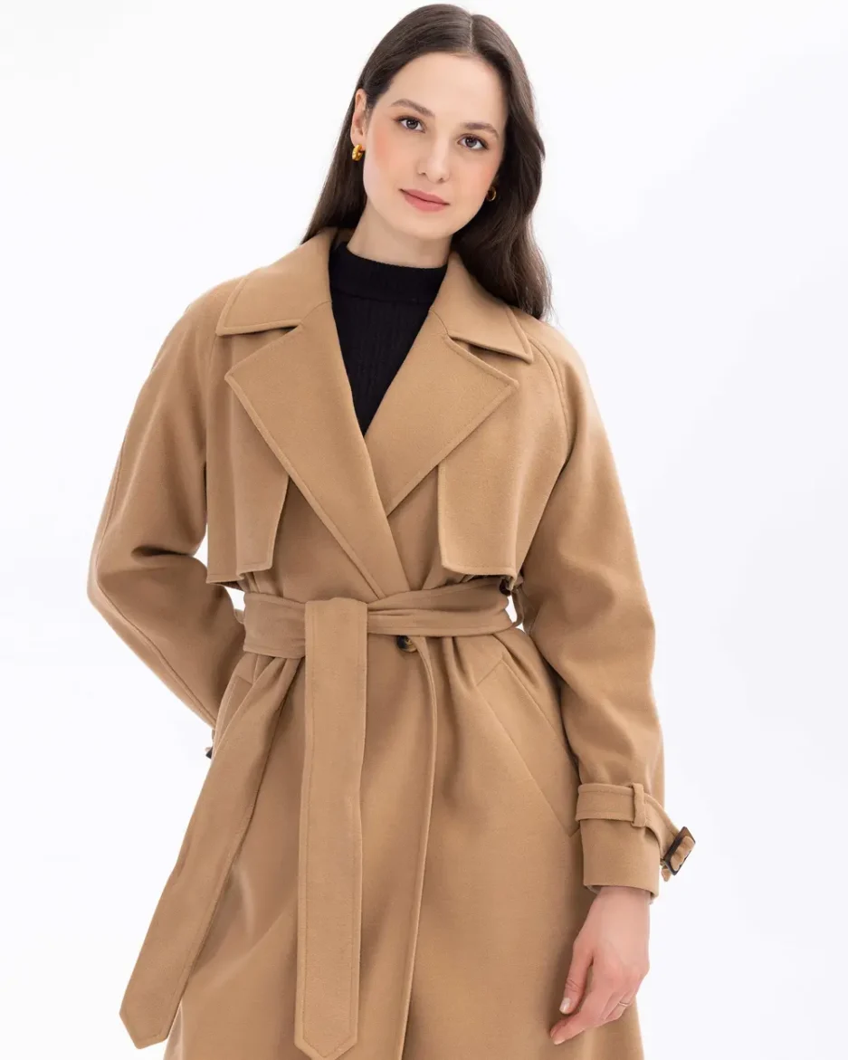Шикарное миди-пальто с подпоясывающим ремнем и перекрестным воротником, идеально для холодной погоды, стильное и элегантное решение для вашего гардероба
