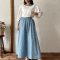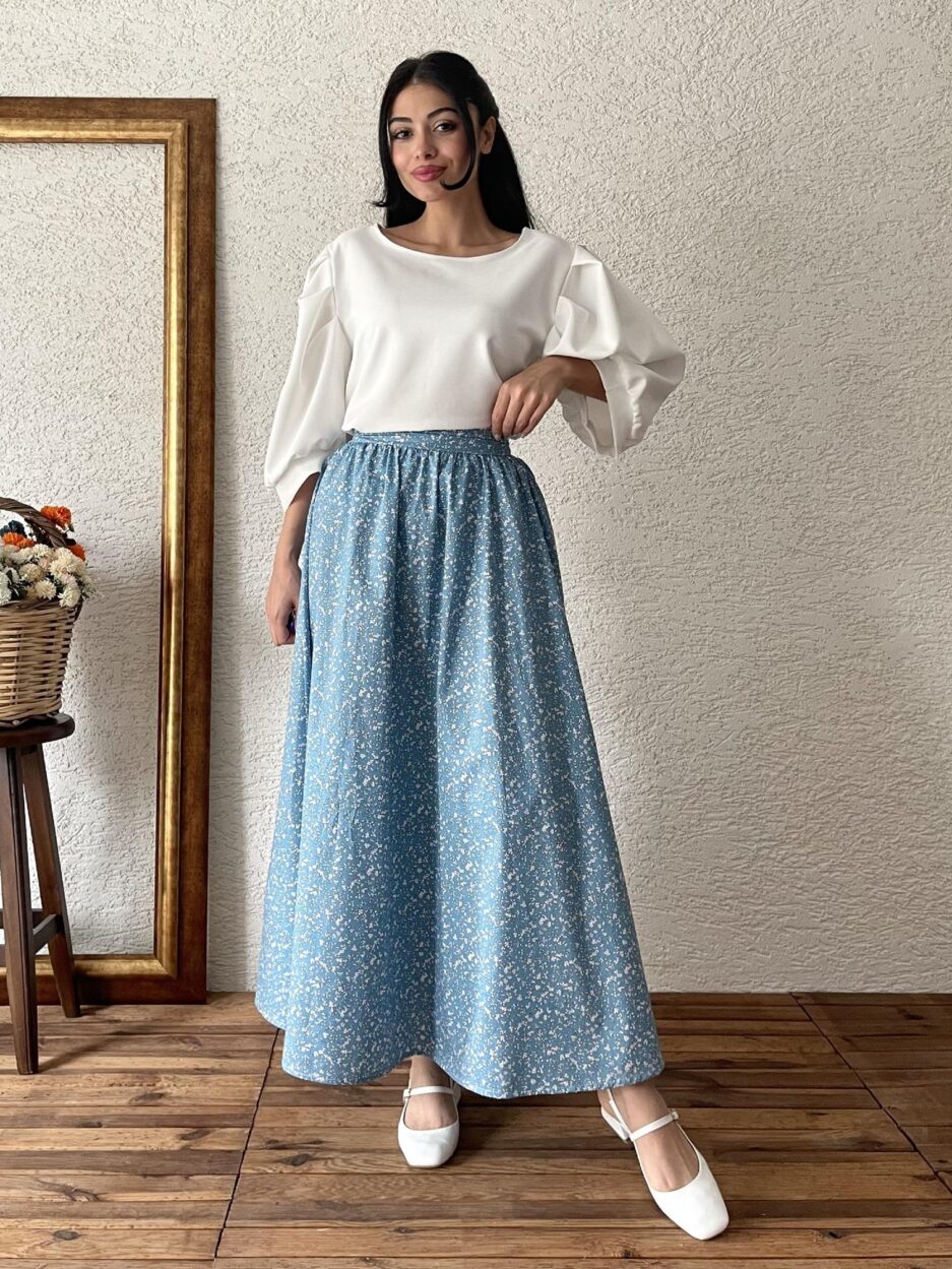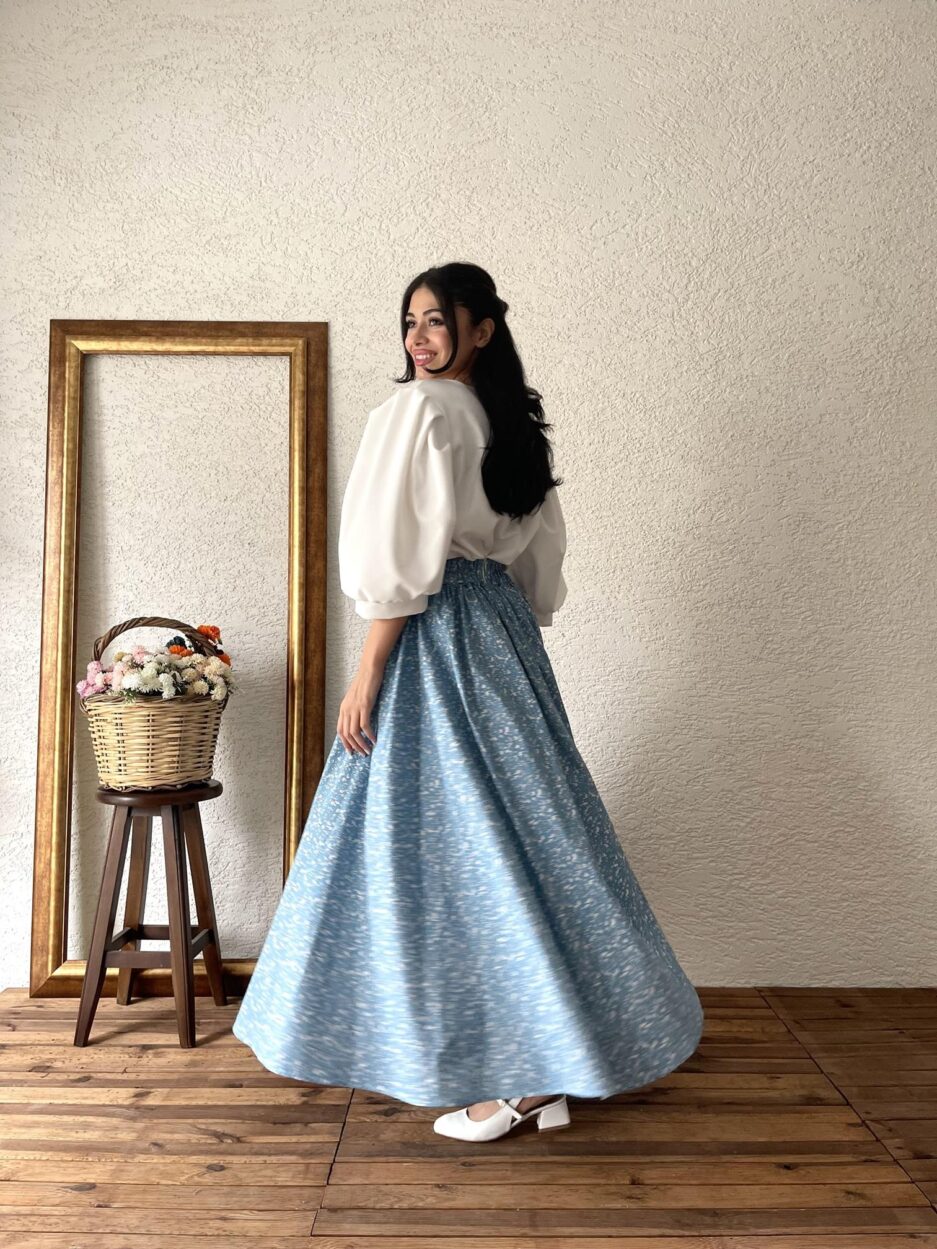 Синяя хлопковая юбка клеш из поплина, модель S, длина 95 см, подходит для ручной стирки, не просвечивает, стильный и элегантный выбор