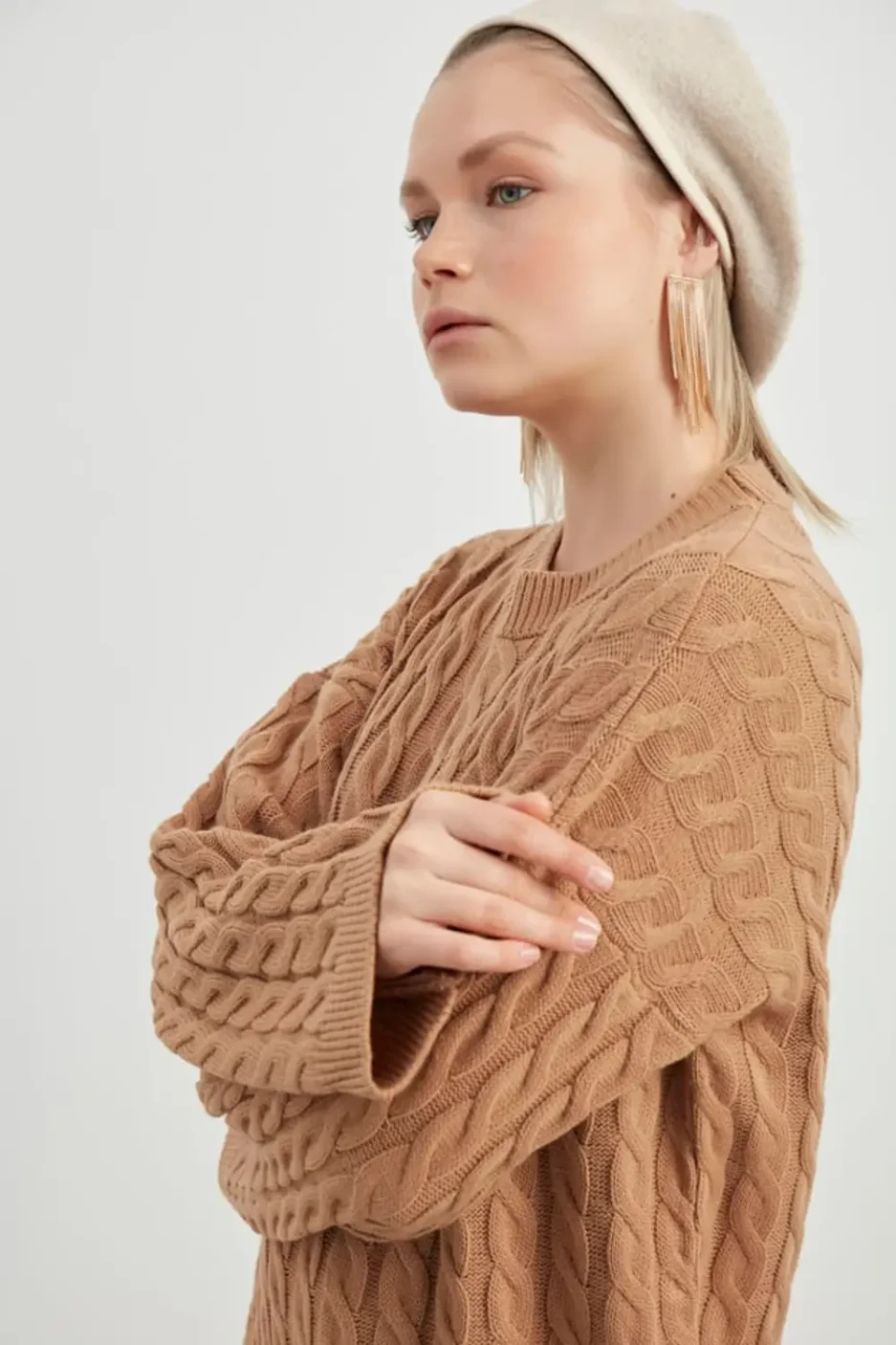 Трико вязаное платье, стандартный размер (бежевое)