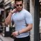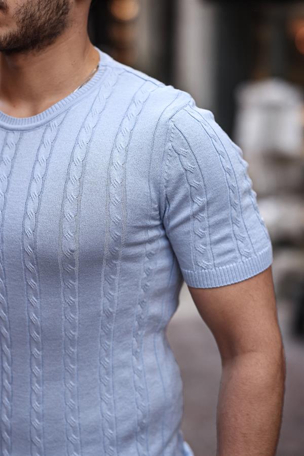 Трикотажная футболка с мелким узором и круглым вырезом – Светло-голубая, идеальная для повседневной и торжественной носки