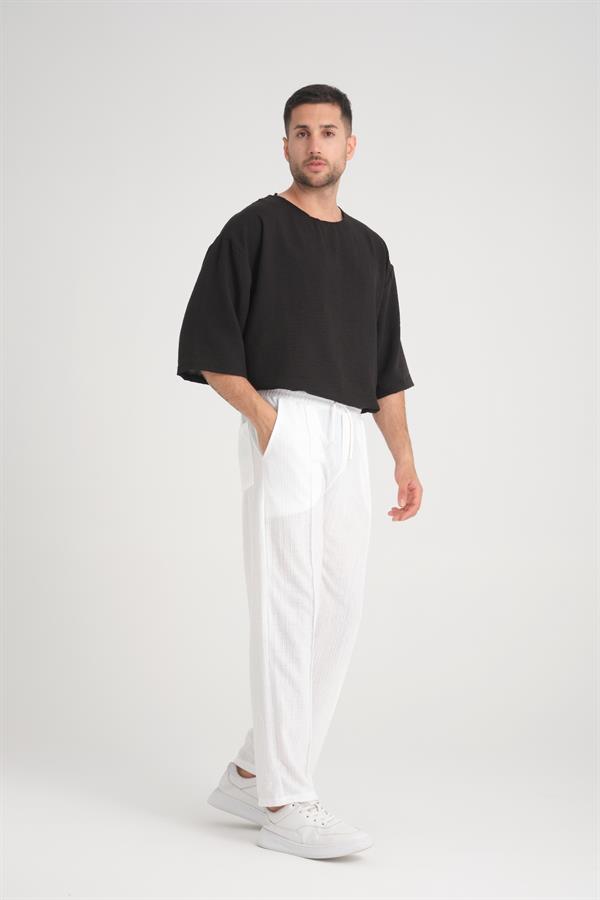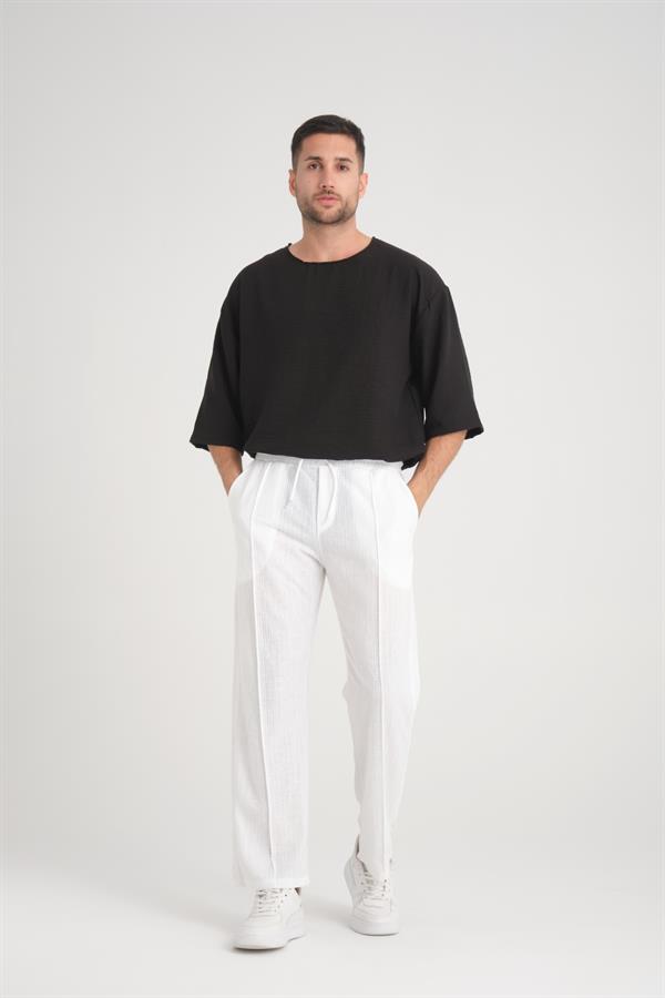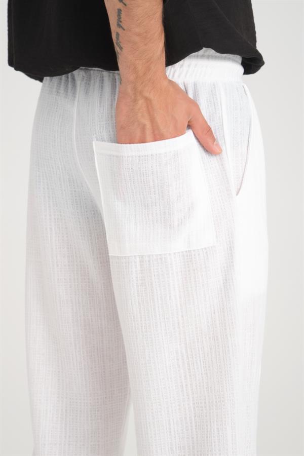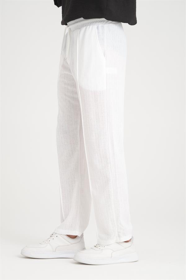 Удобные белые брюки с резинкой на талии, 100% хлопок, стильный и современный дизайн, идеальны для повседневного ношения