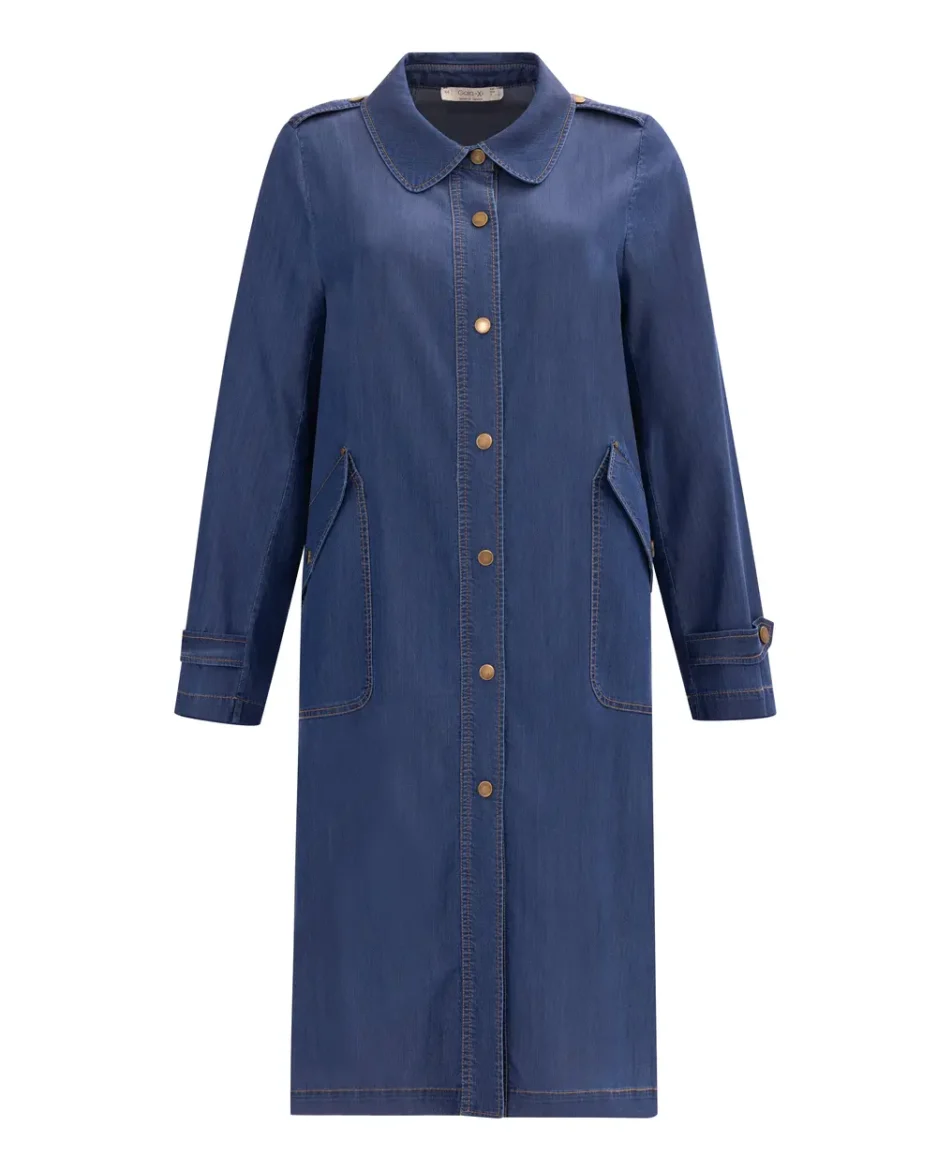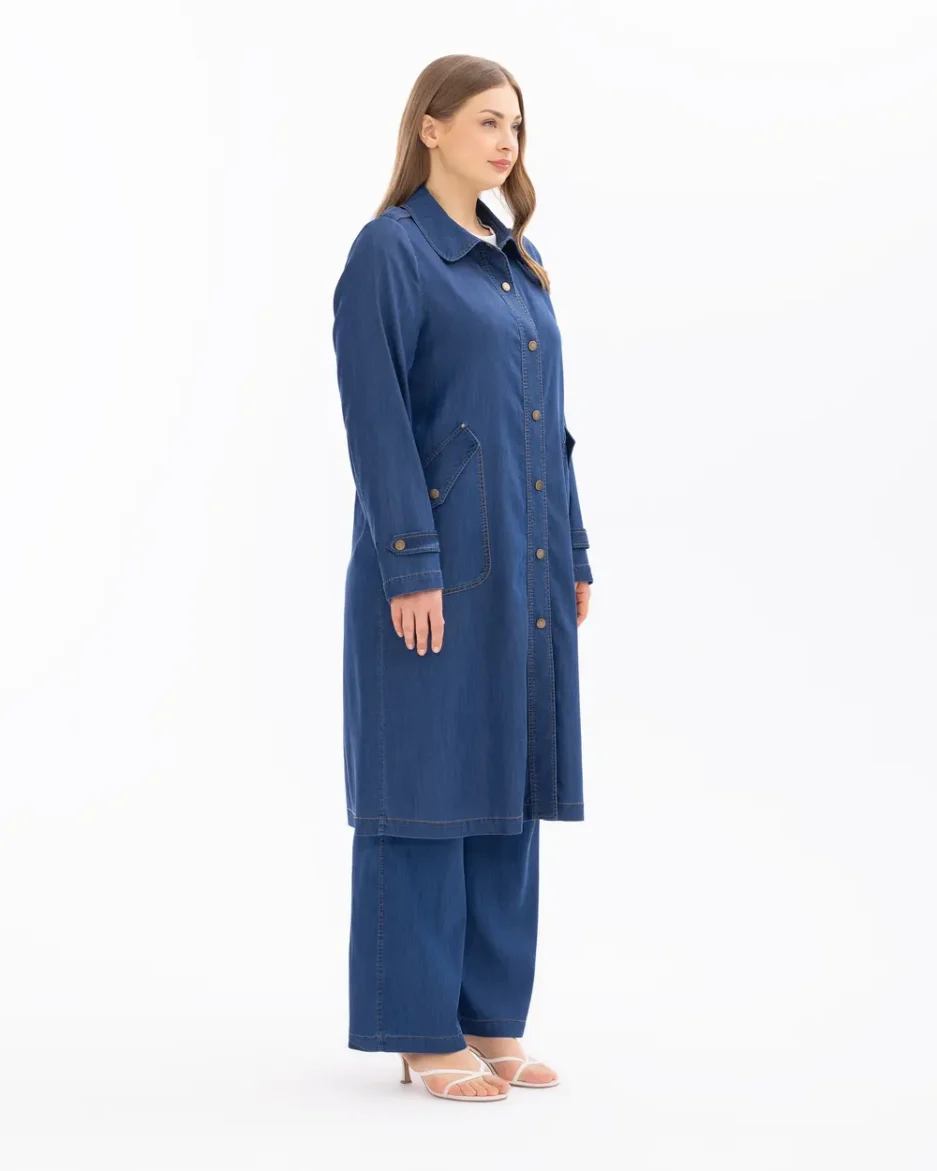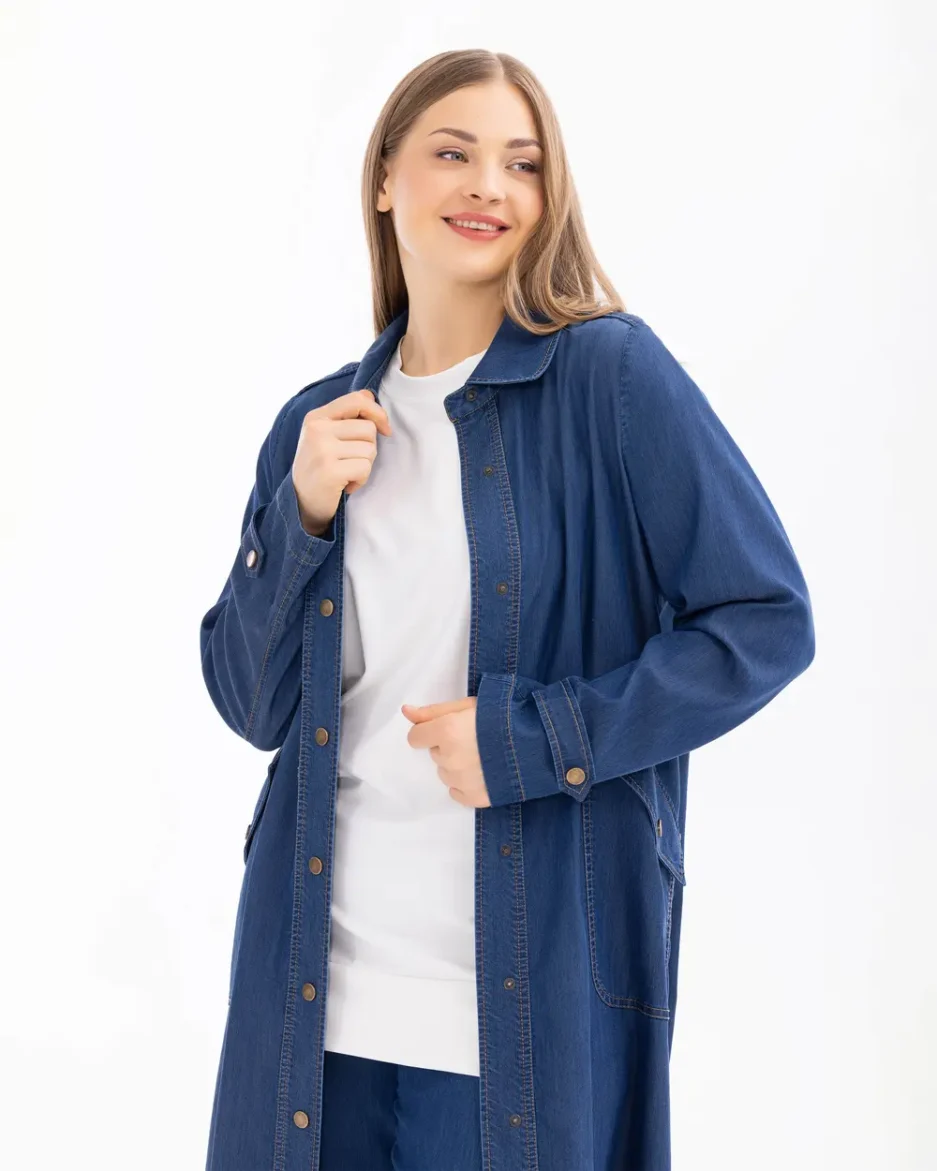 Удобный джинсовый пиджак больших размеров с карманами, из долговечного материала, идеально подходит для повседневной носки, цвет: тёмно-синий