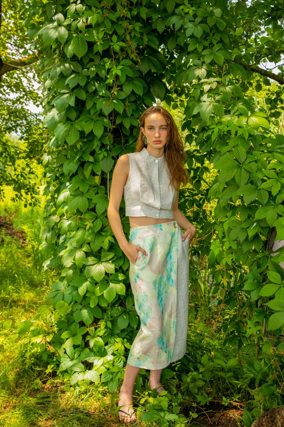 Юбка с узором adL & For Art "Счастливые души", 100% лен, размер M, вдохновляет радостью и гармонией, подходит для ярких образов