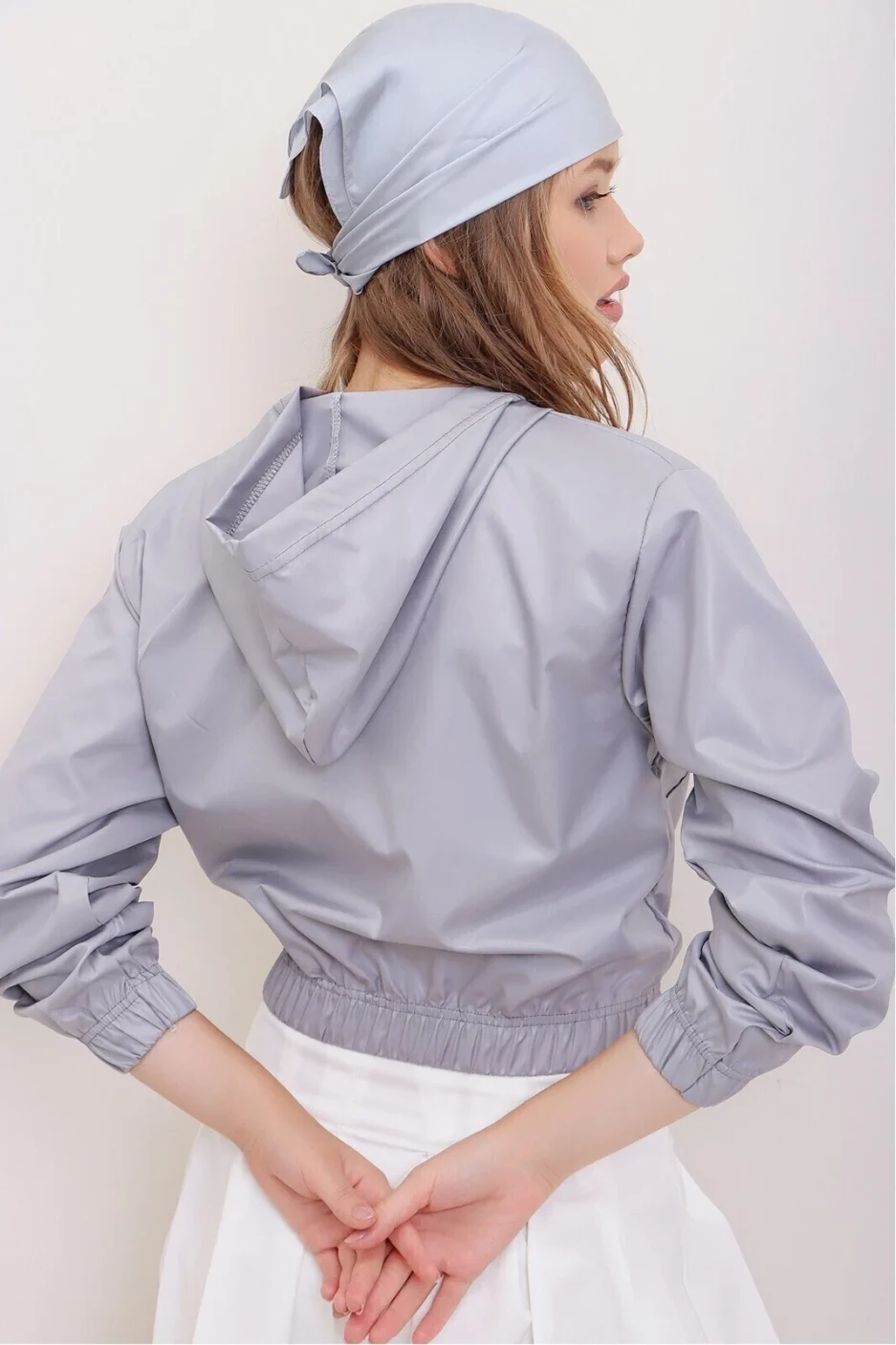 Женская серая куртка с капюшоном и карманами, легкая, без подкладки, на резинках, актуальный стиль, размеры 36-42